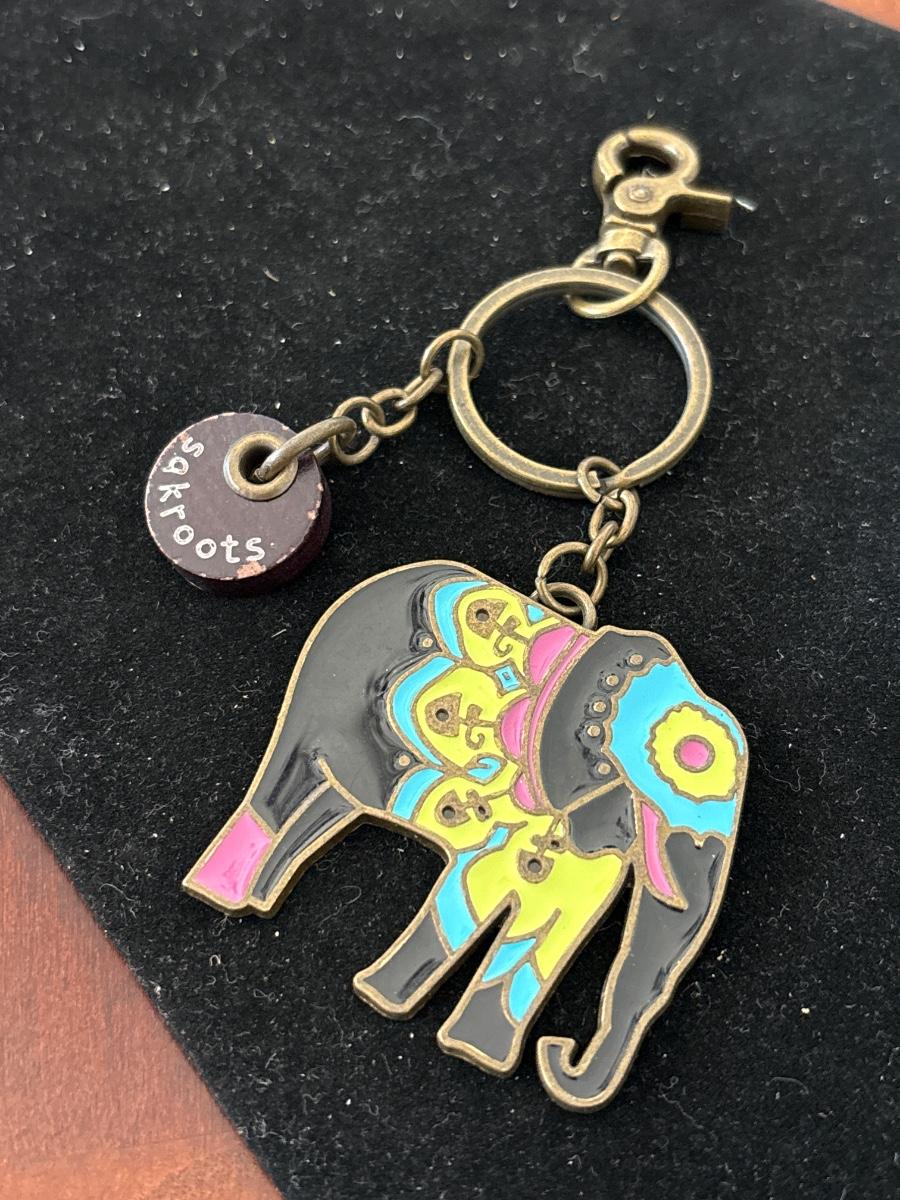 Sakroots Adorned Elephant Keychain Logo Charm Metal Enamel Keyring Purse Clip