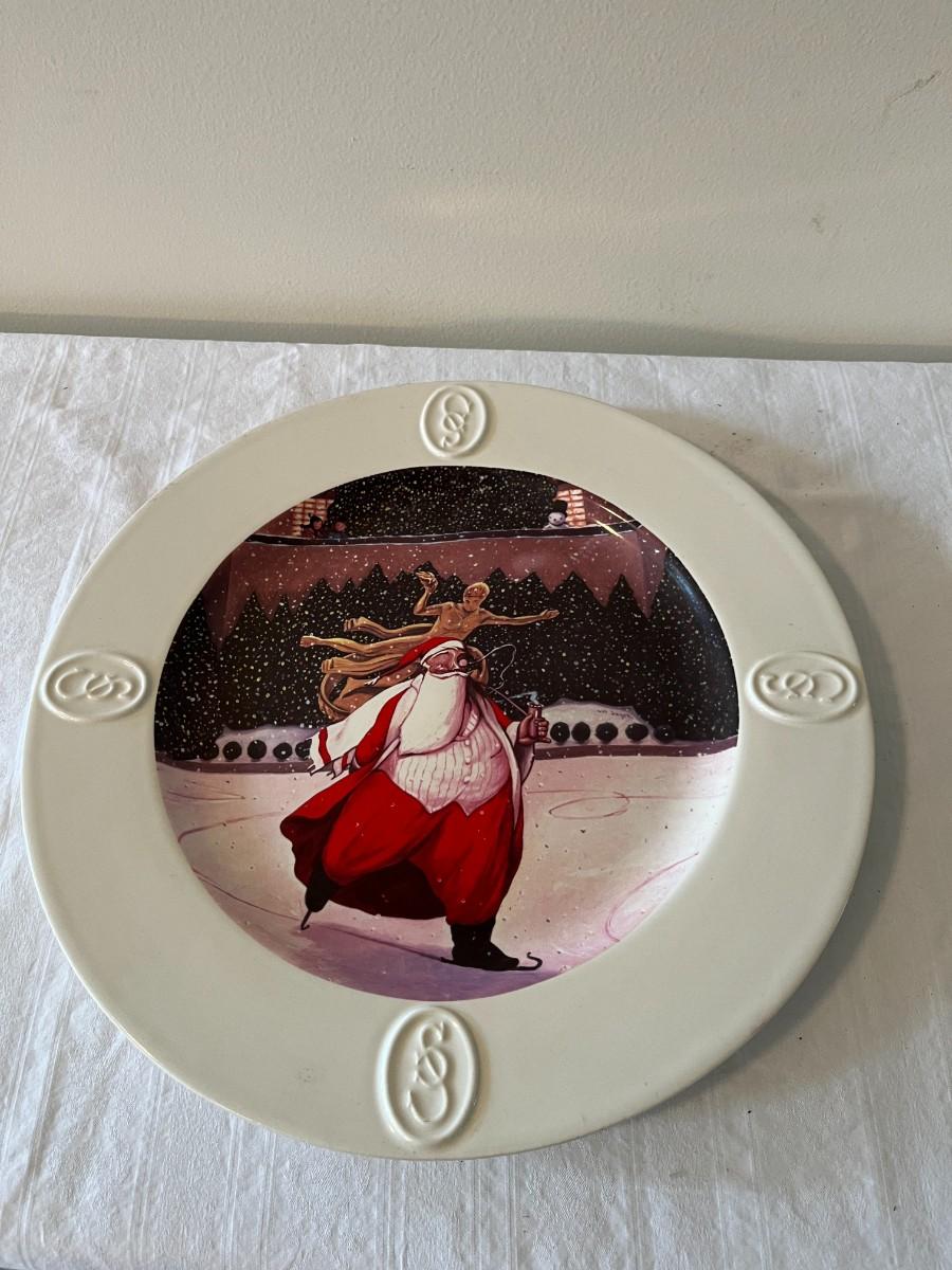 Saks Fifth Ave Christmas Santa Platter featuring an illustration by William Joyce likely from his book "Santa Calls"