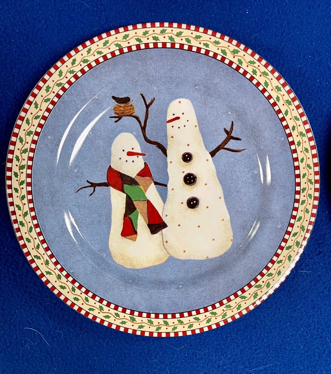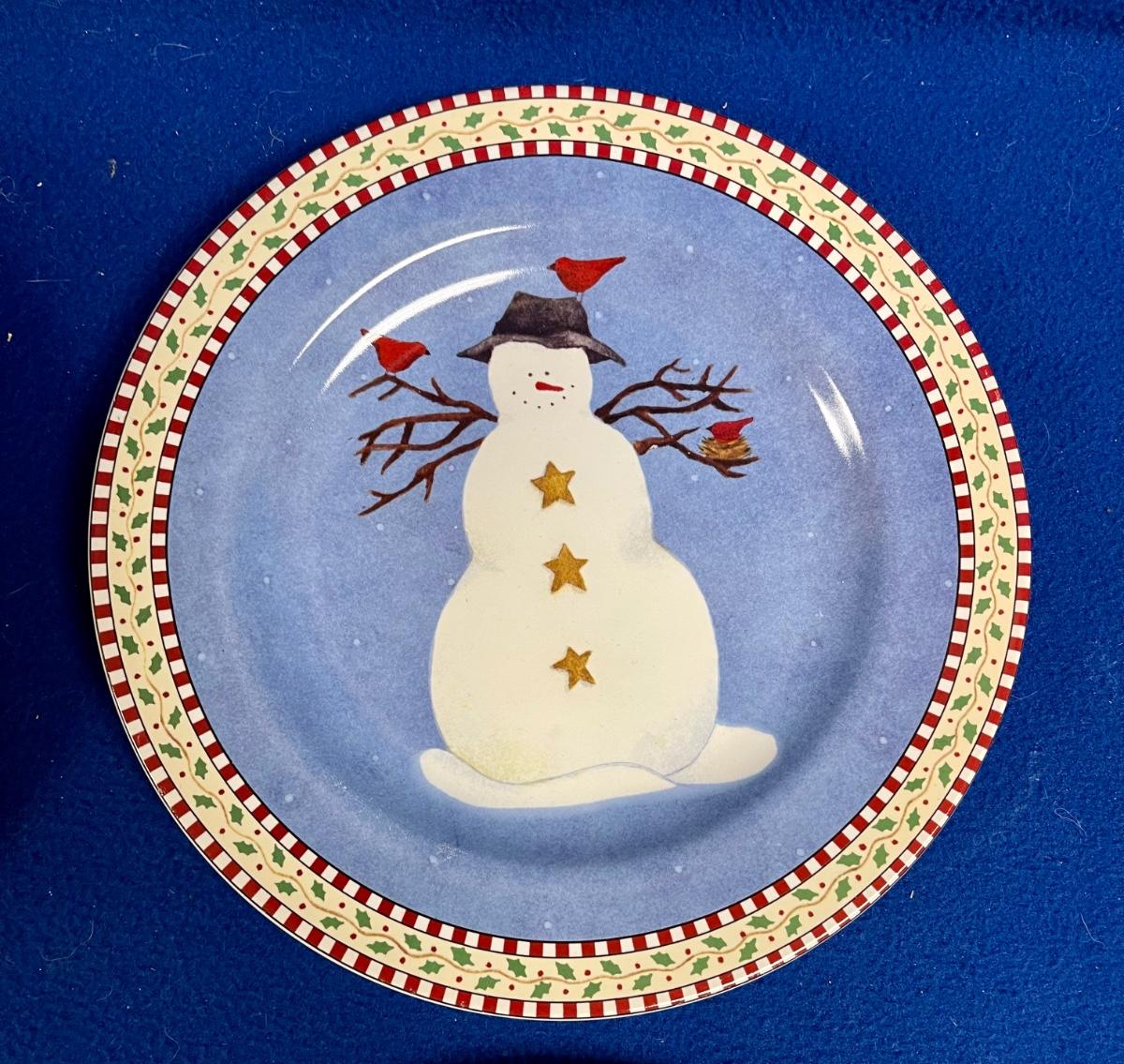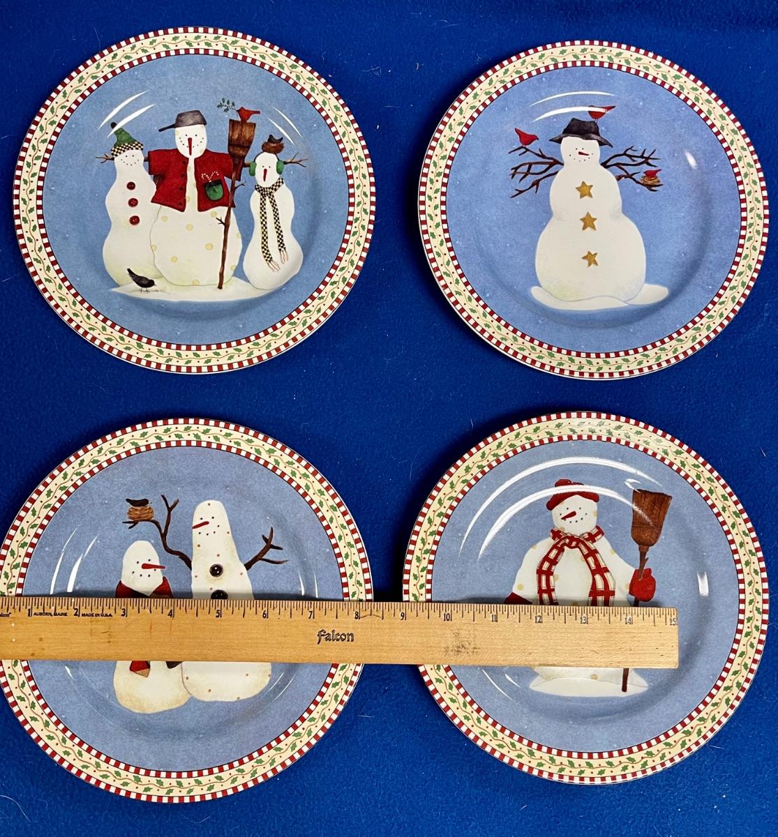Sakura Set of 4 Snowman Salad Luncheon Dessert Plates. In good condition.