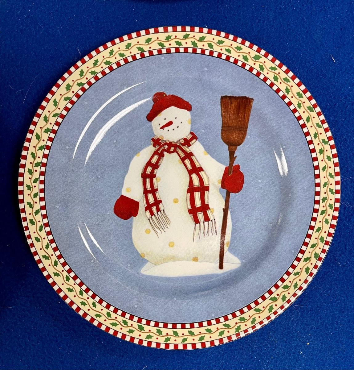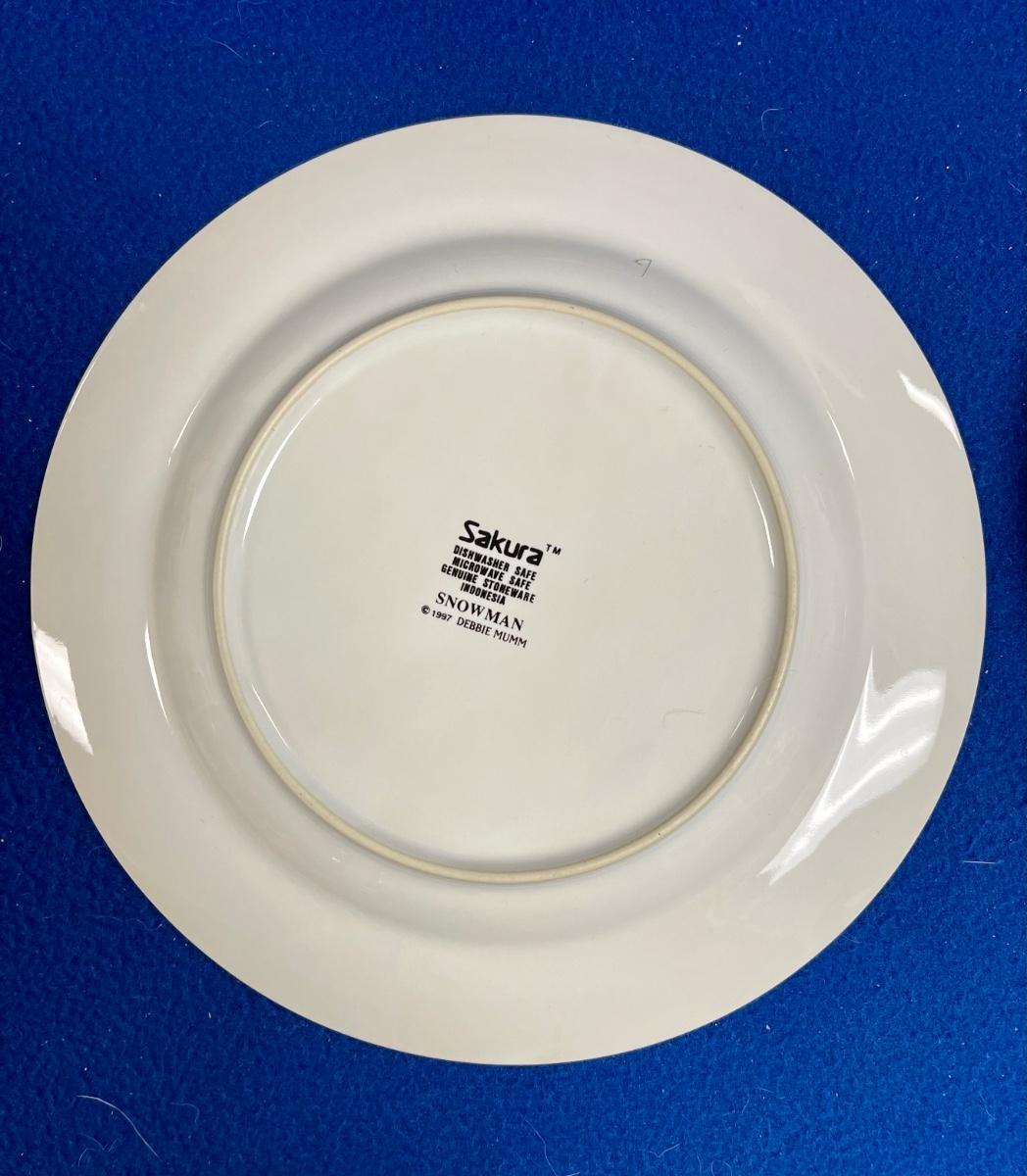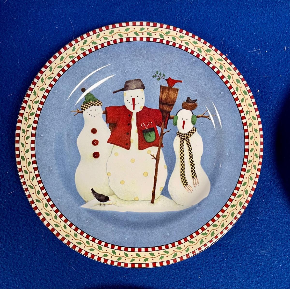 Sakura Set of 4 Snowman Salad Luncheon Dessert Plates. In good condition.