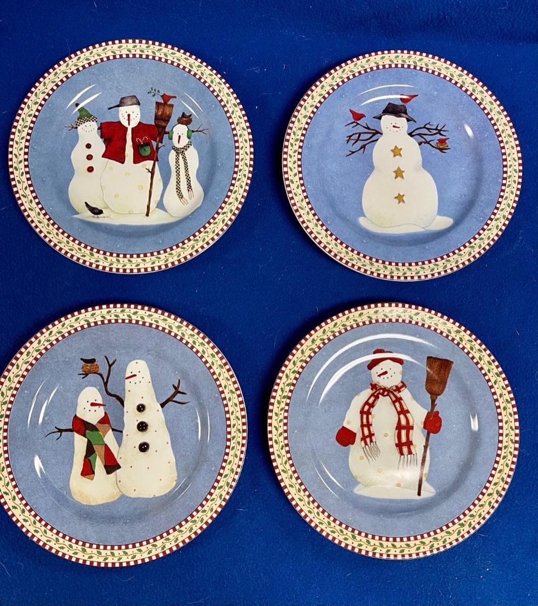 Sakura Set of 4 Snowman Salad Luncheon Dessert Plates. In good condition.