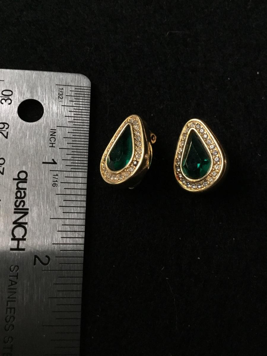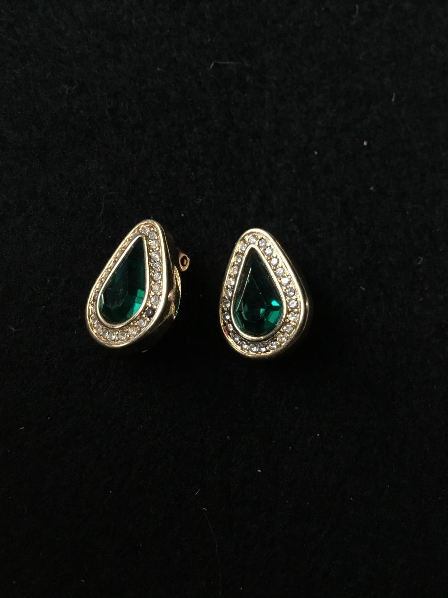 Sal marked gold tone clip on earrings featuring emerald green center