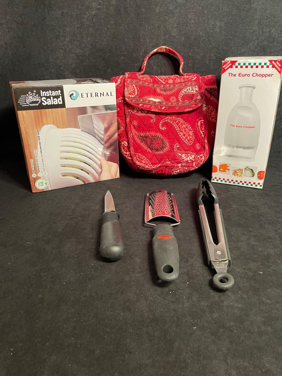 Euro Chopper, Instant Salad Slicer, 3 utensils and a Vera Bradley lunch bag