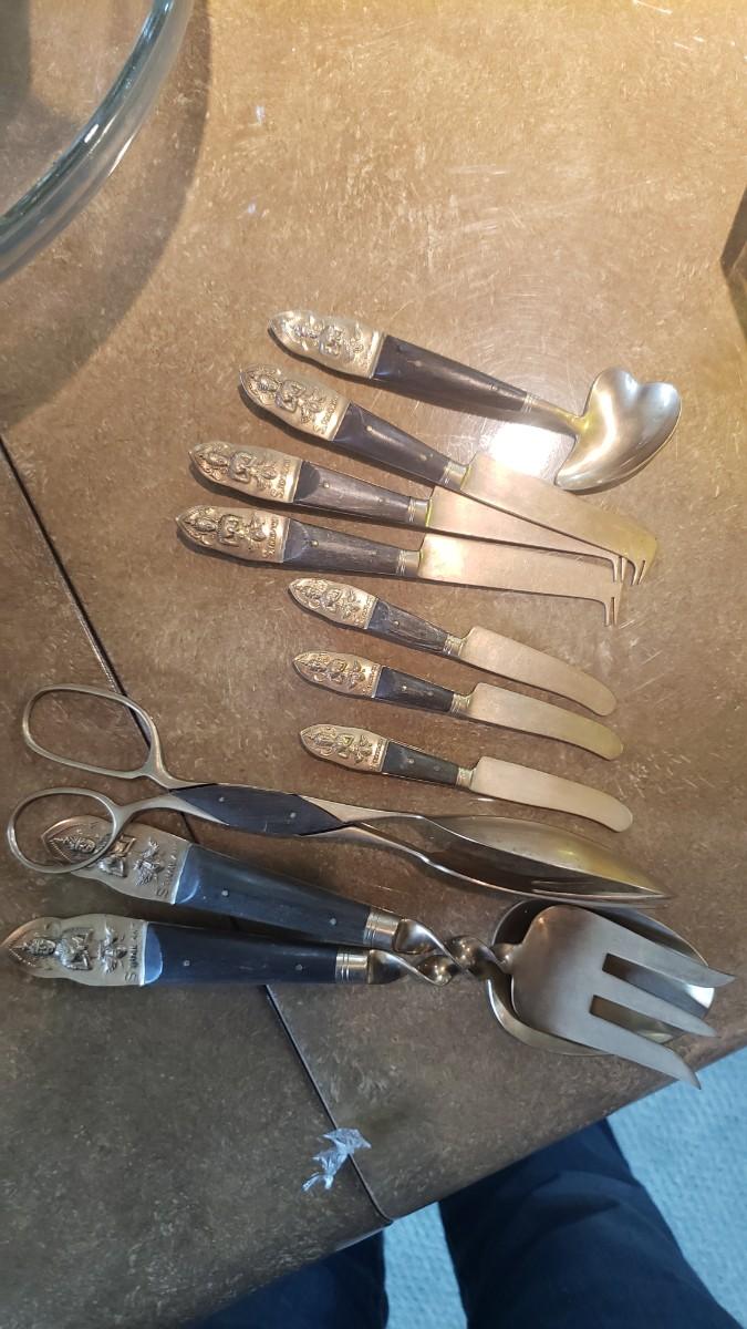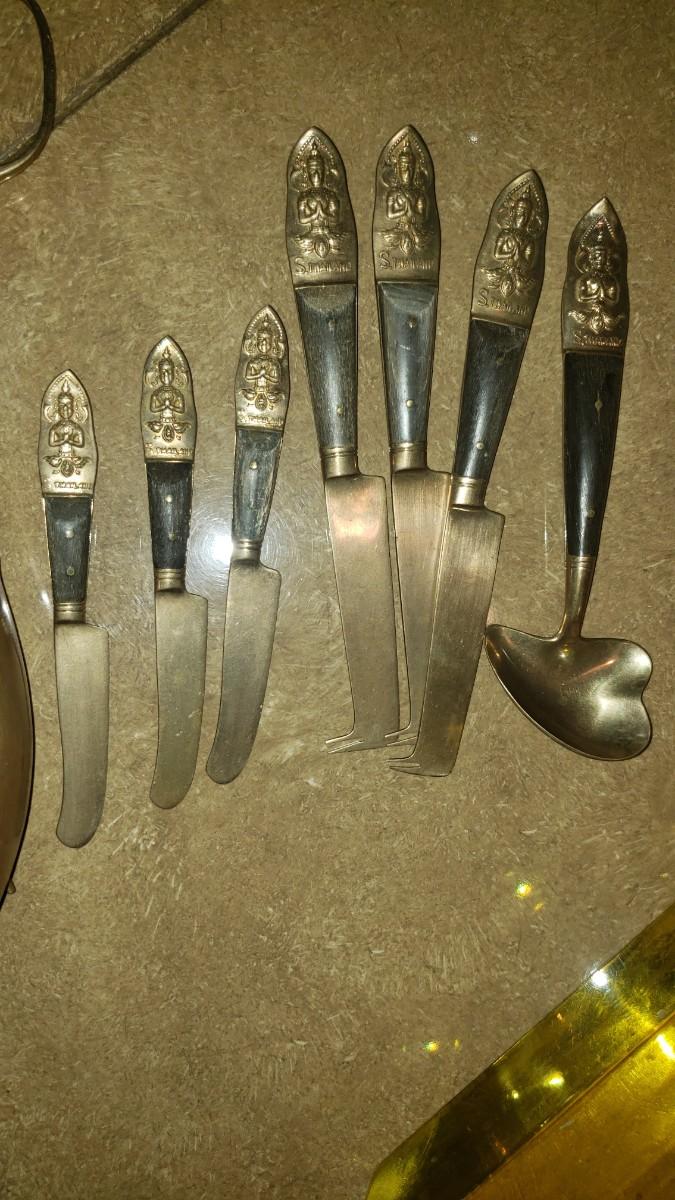 Small appetizer knives and condiment spoon