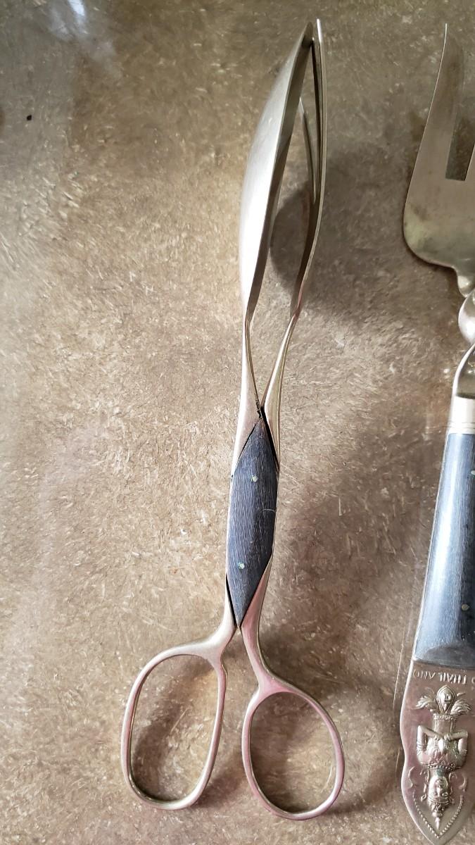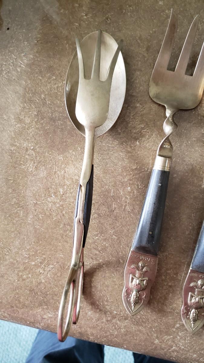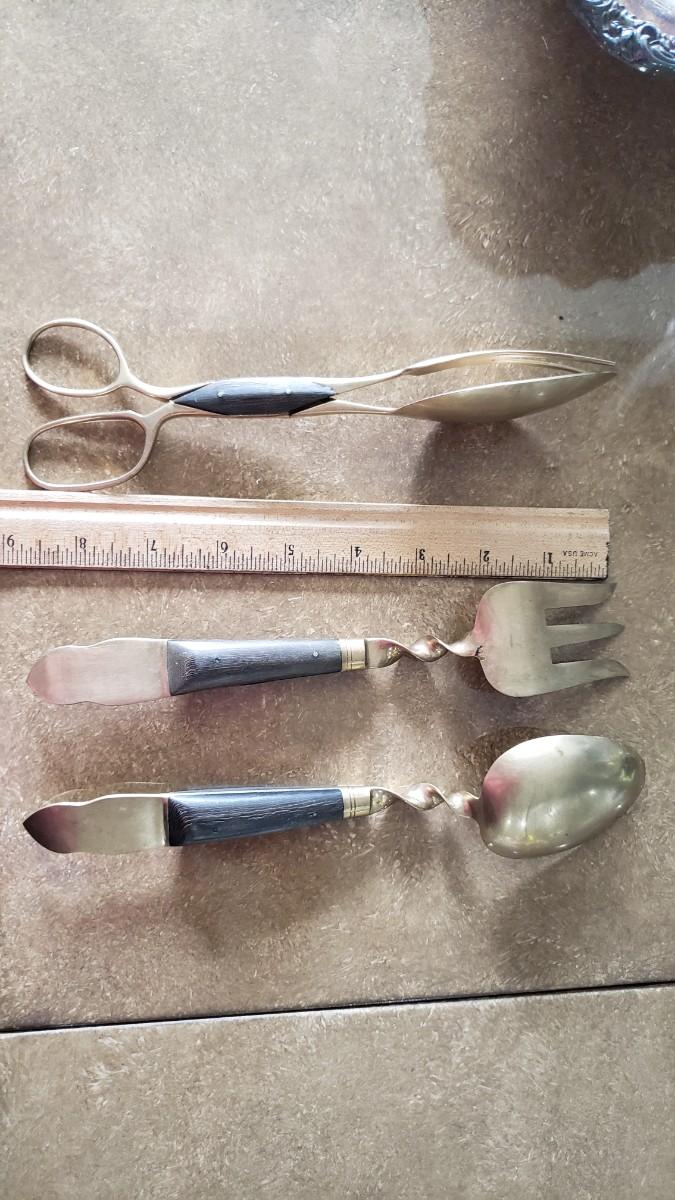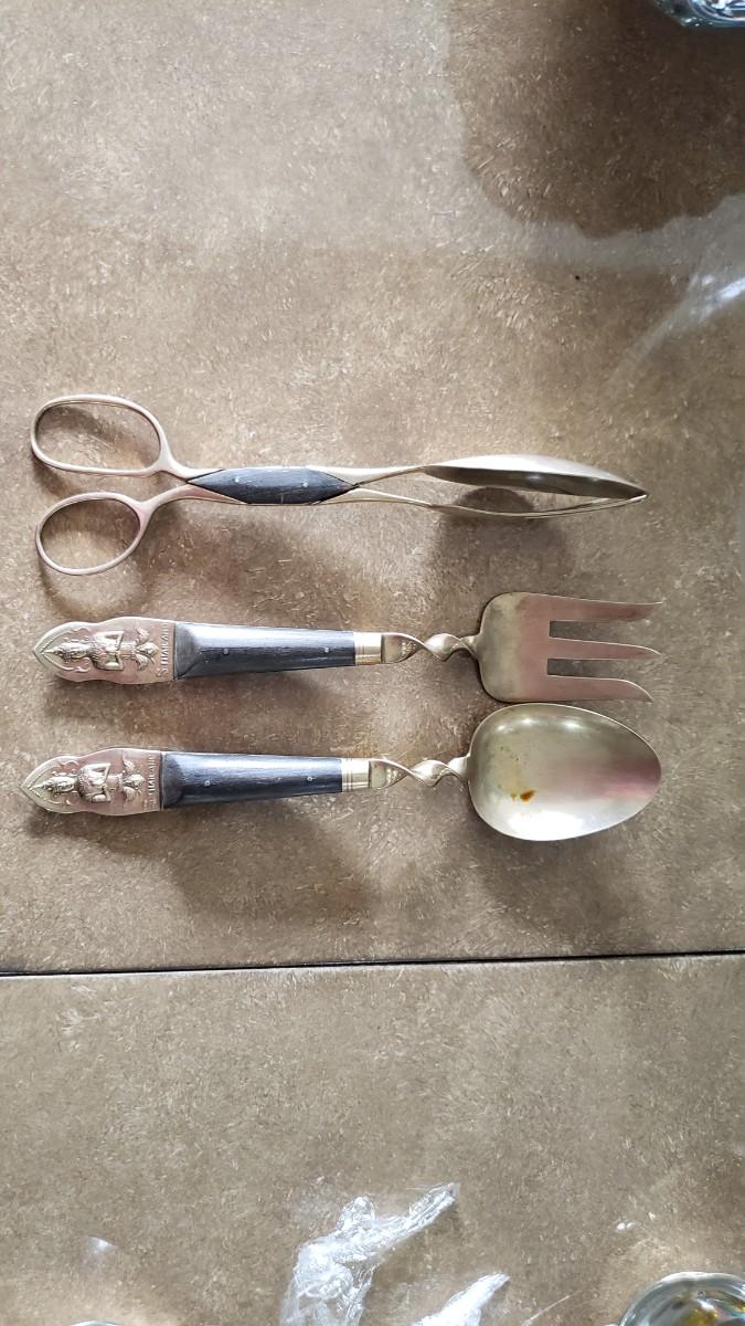 Salad spoon and fork and tongs