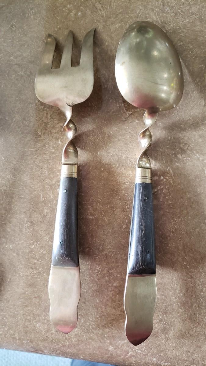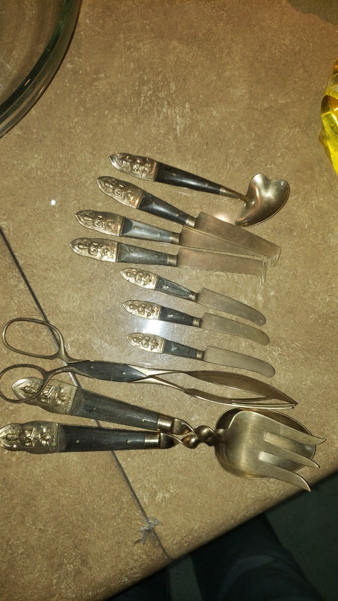 brass or bronze, wood or Black horn