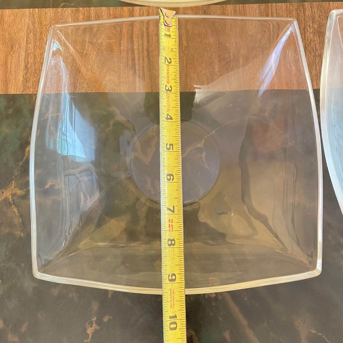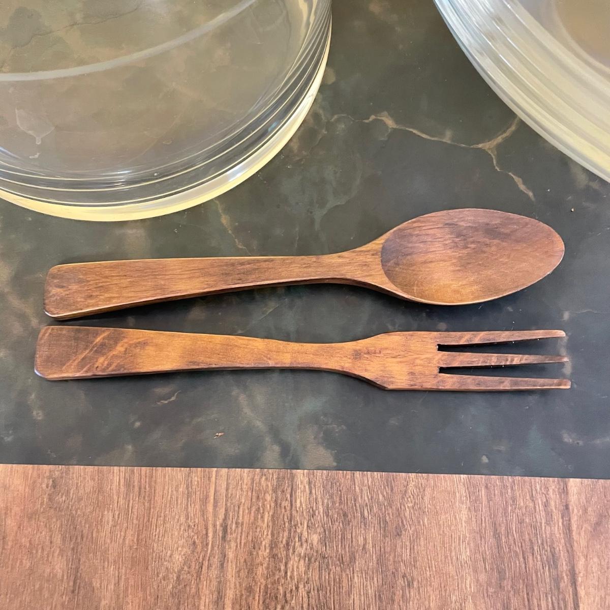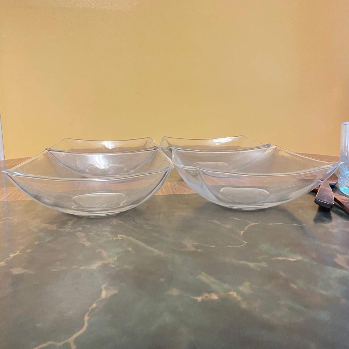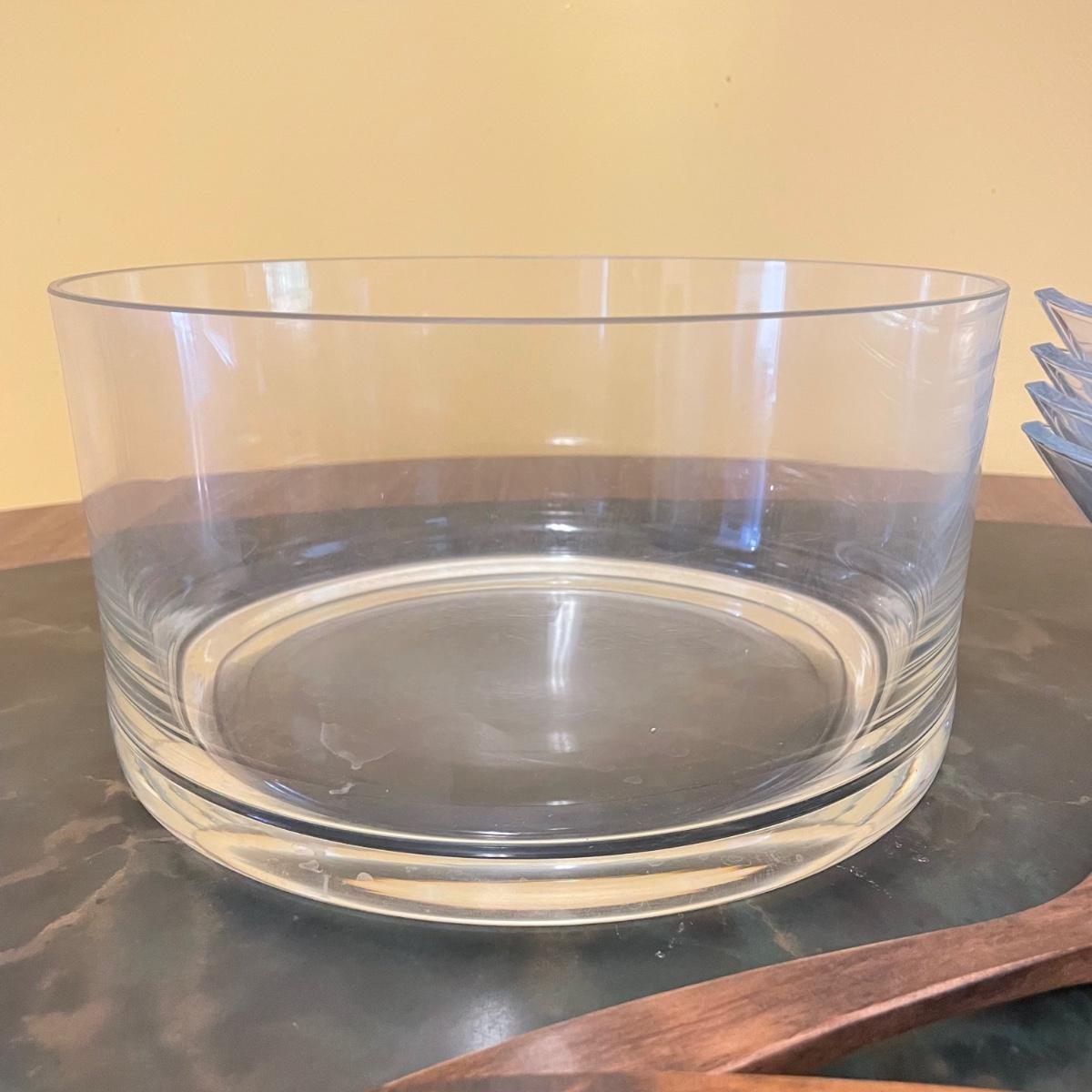 Beautiful serving combination with a large glass bowl. Four large dishes perfect for serving, but also a good size for salad or pasta dishes. Lastly two wooden 10” serving utensils. See images. Local pick up only.
