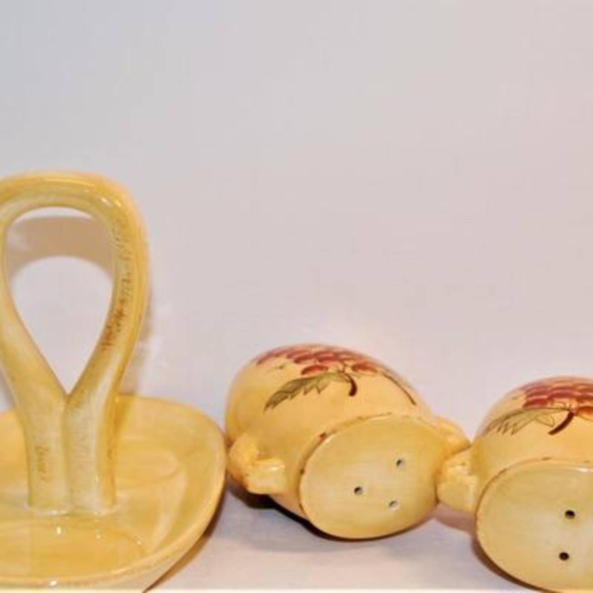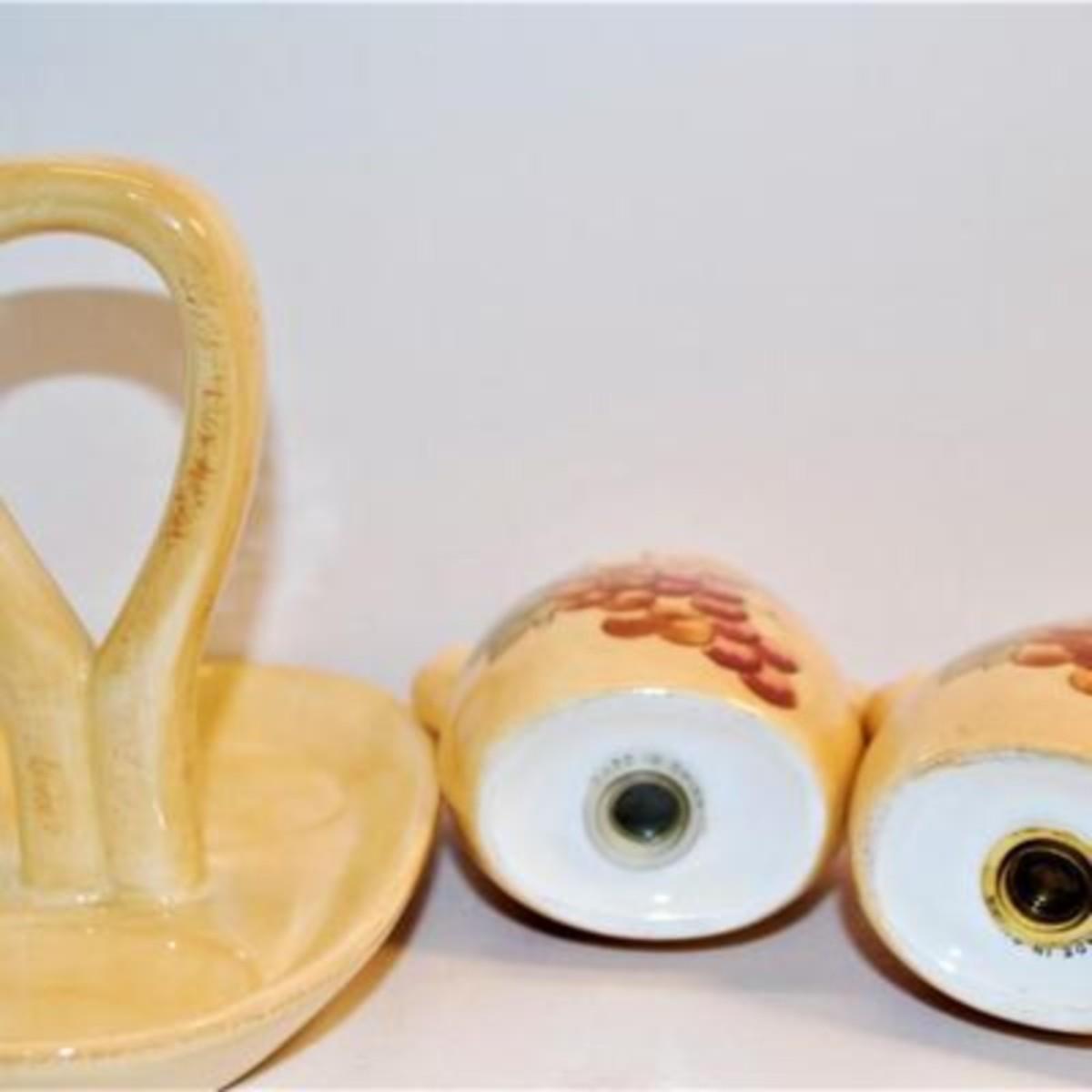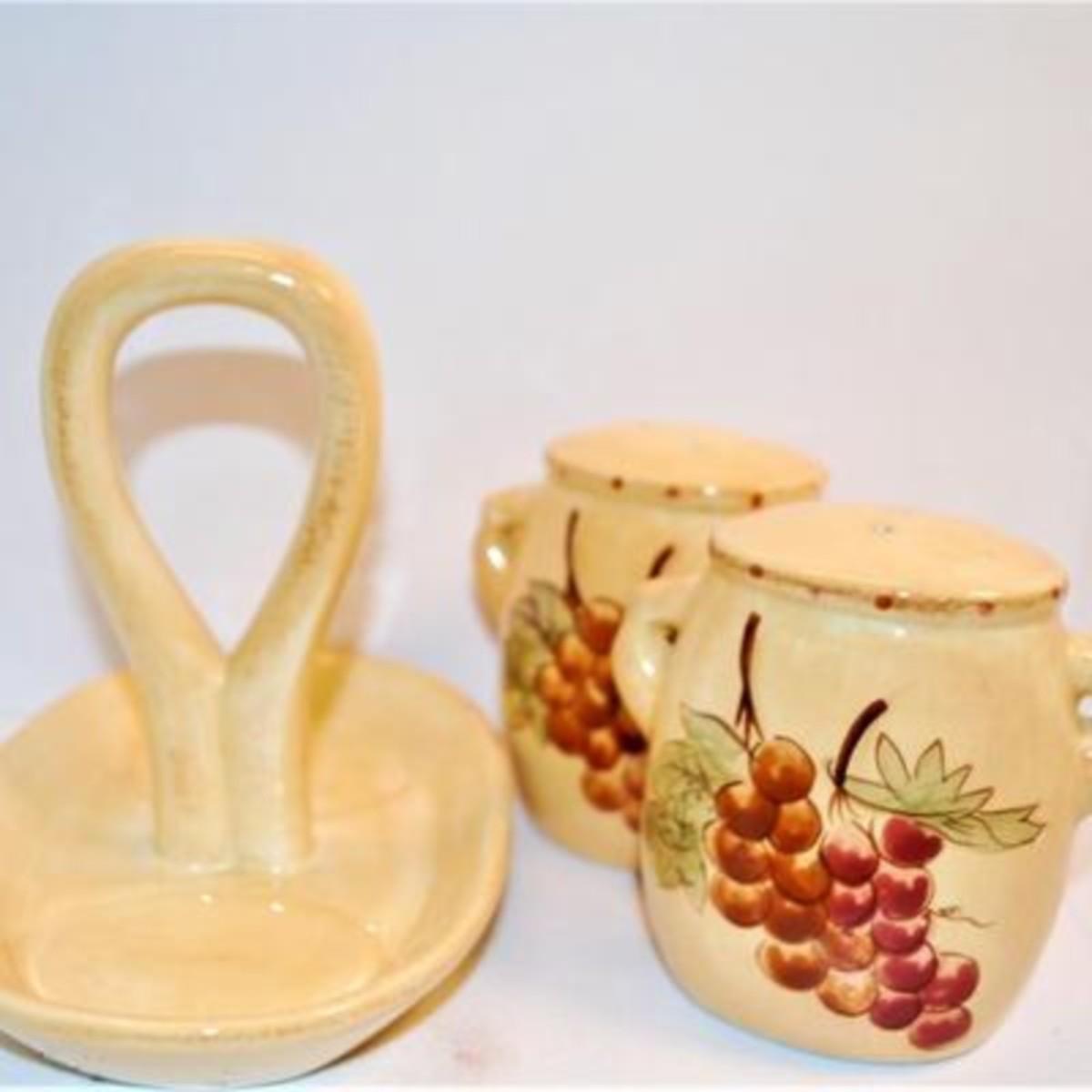 "Sale & Pepe" Set with Ceramic Holder and Tube Handle 3½" H & Beige Set 3¼" H with Brown Grape Bunch, Handles and Tray 6" x 4"