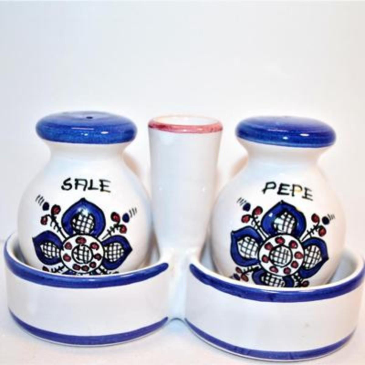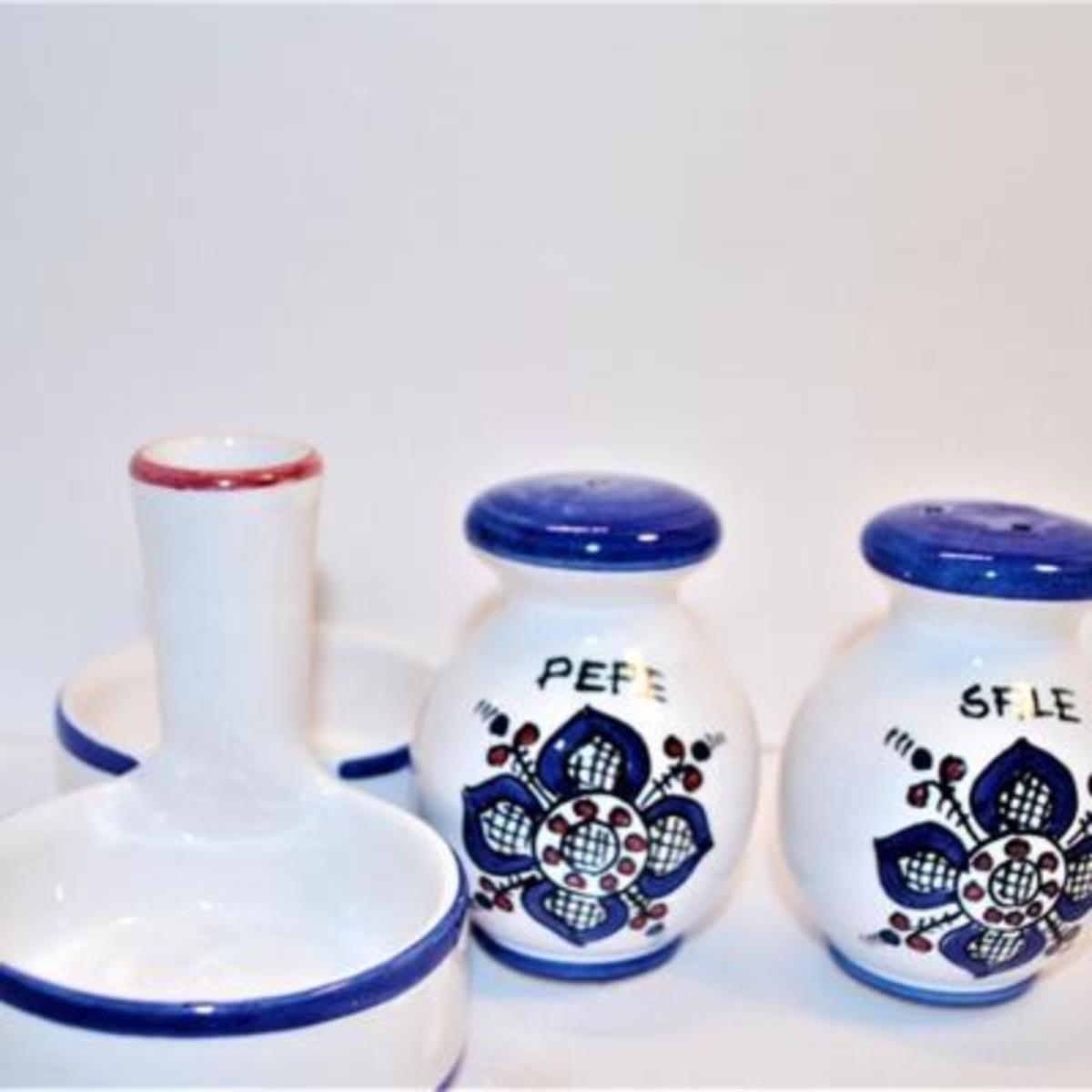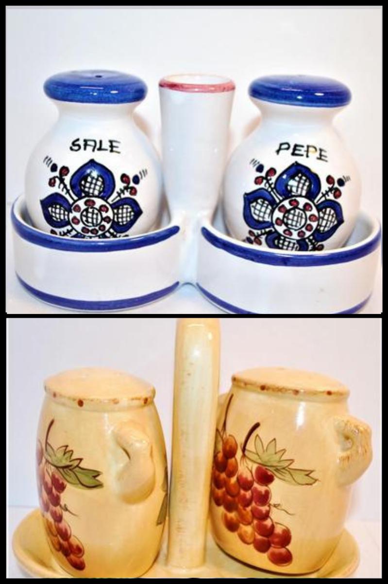 "Sale & Pepe" Set with Ceramic Holder and Tube Handle 3½" H & Beige Set 3¼" H with Brown Grape Bunch, Handles and Tray 6" x 4"