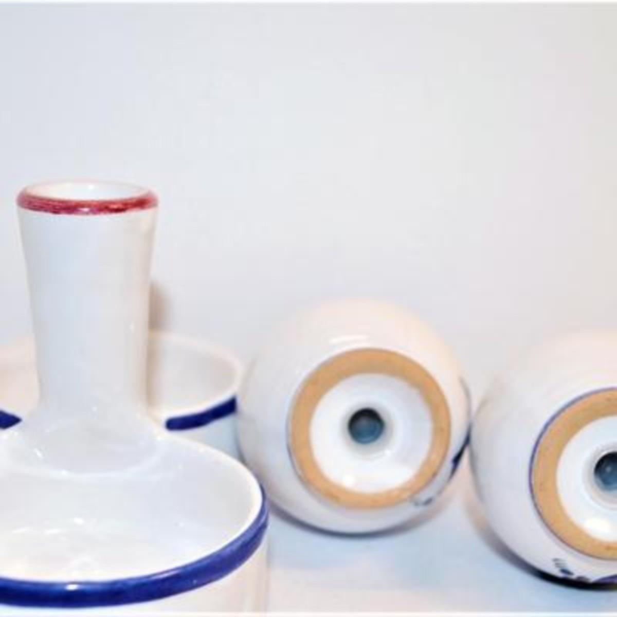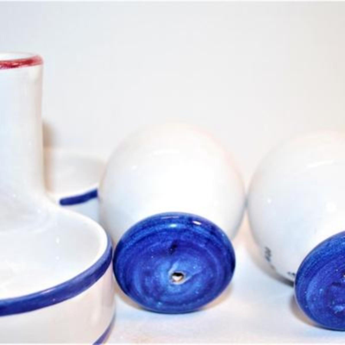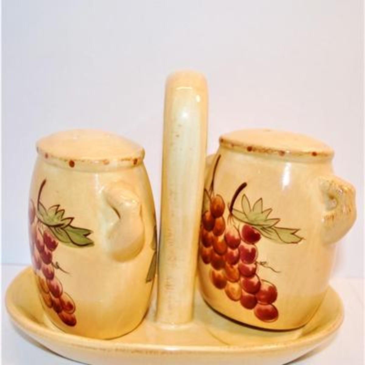 "Sale & Pepe" Set with Ceramic Holder and Tube Handle 3 ½" H & Beige Set 3¼" H with Brown Grape Bunch, Handles and Tray 6"x4"