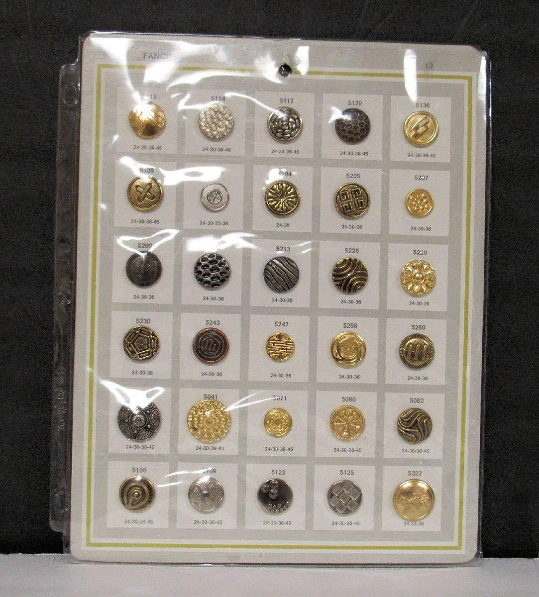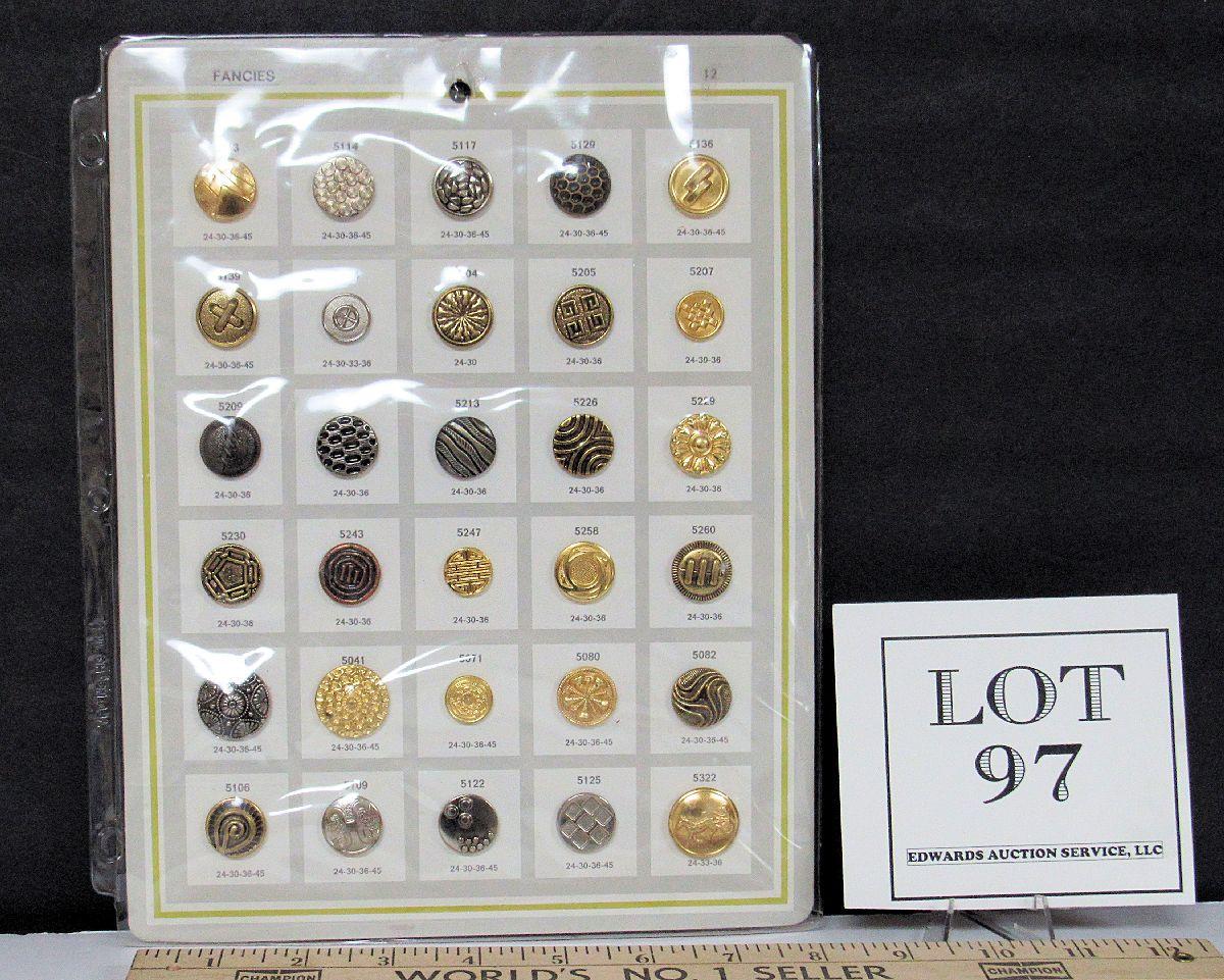 Salesman's Sample Buttons Card, 30 Metal Buttons, Fancies