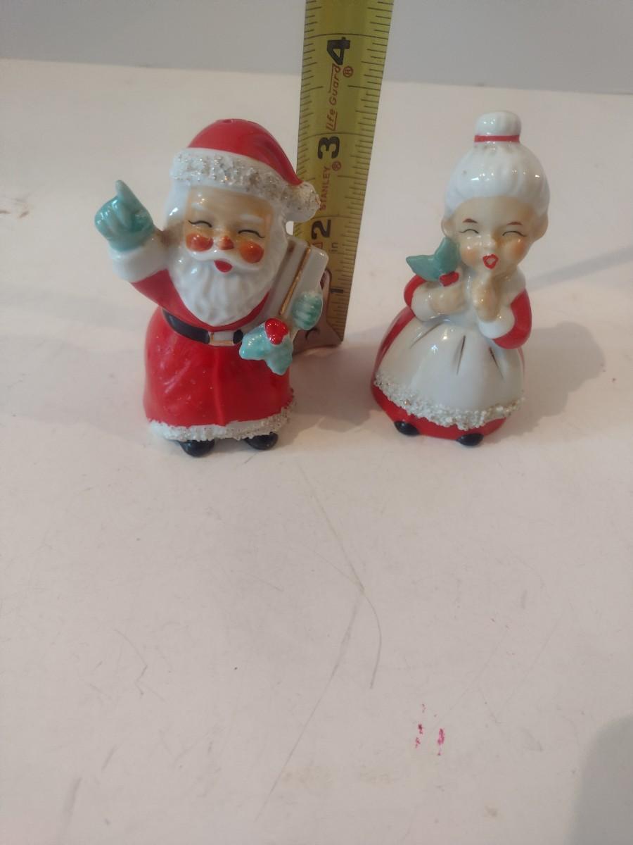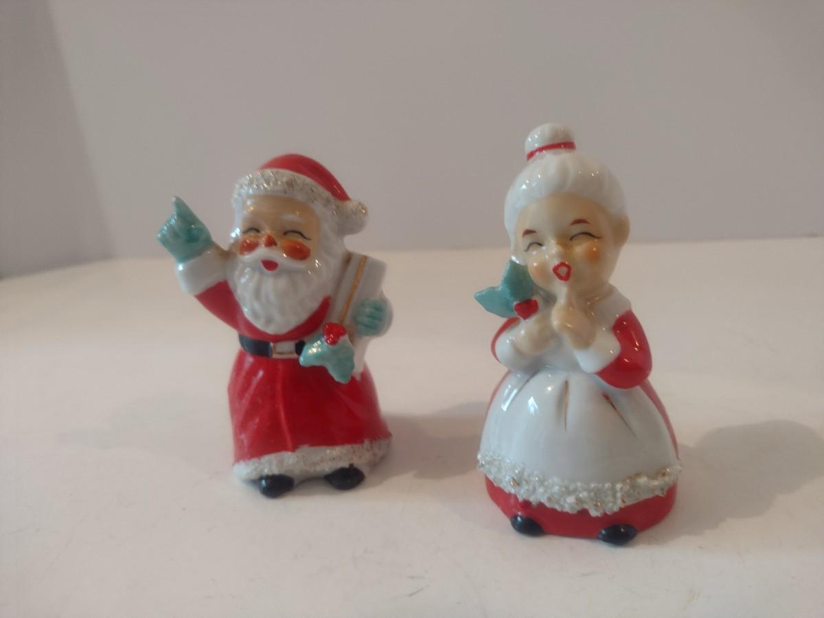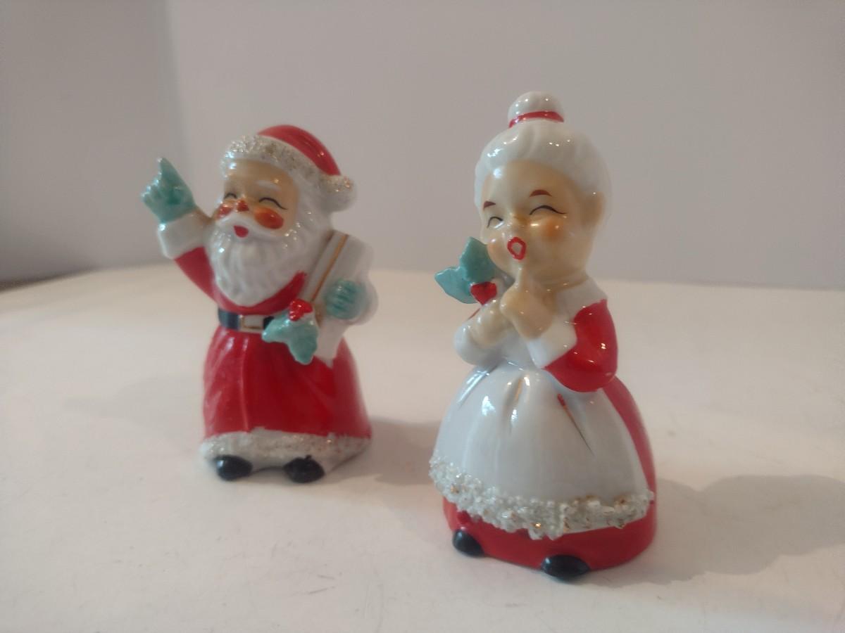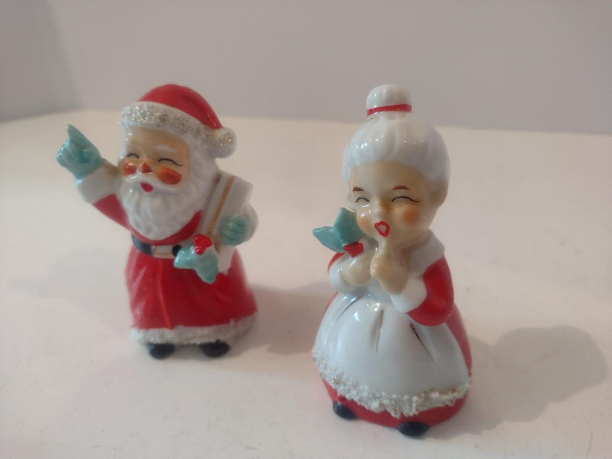 Vintage Japanese Ceramic Mr. and Mrs. Santa Clause Salt and Pepper Shakers