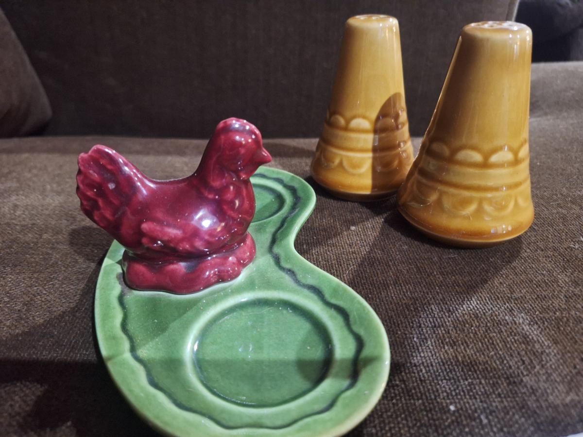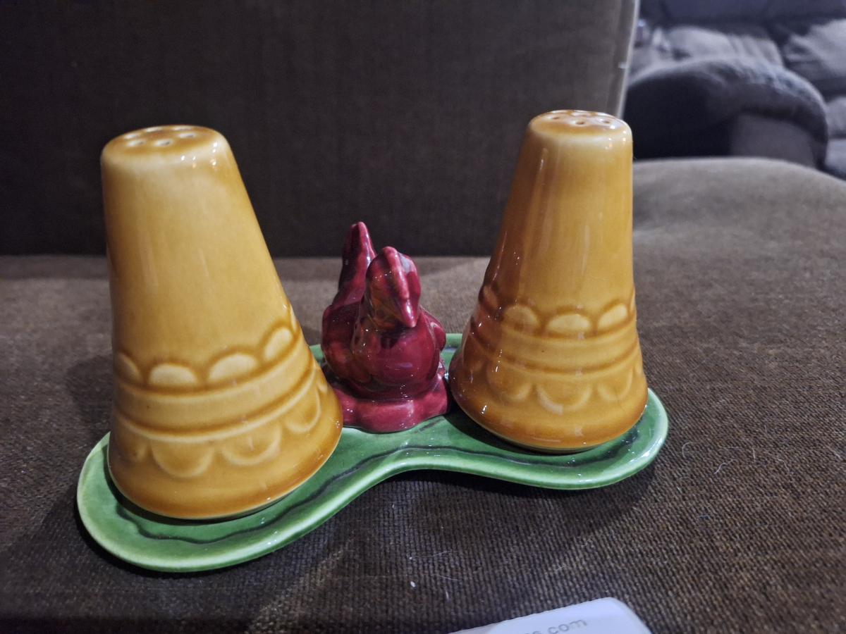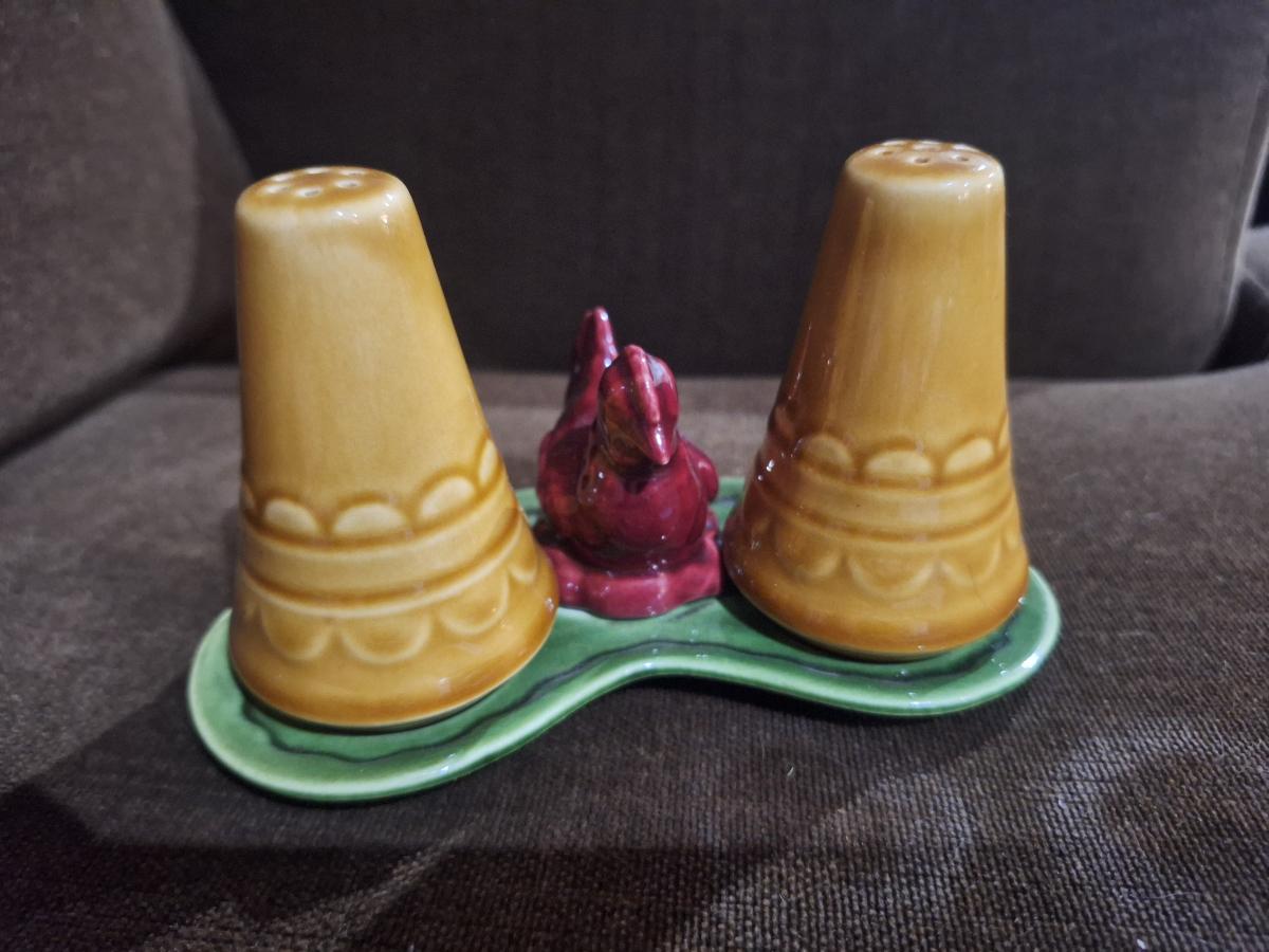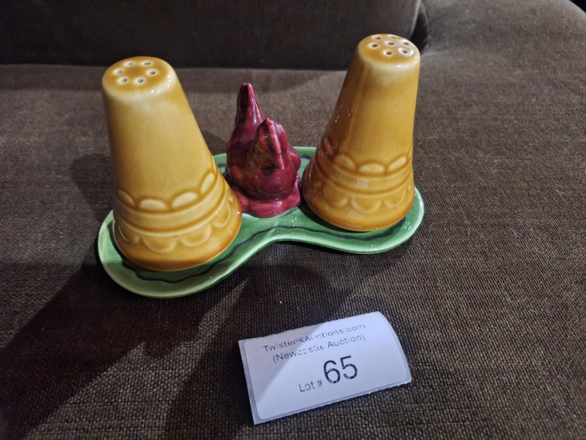 salt and pepper shaker with chicken on tray