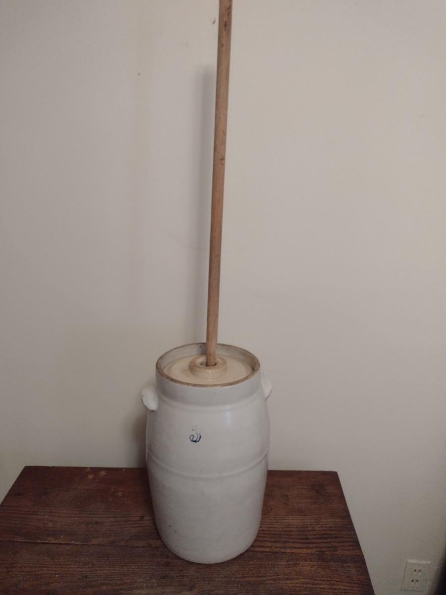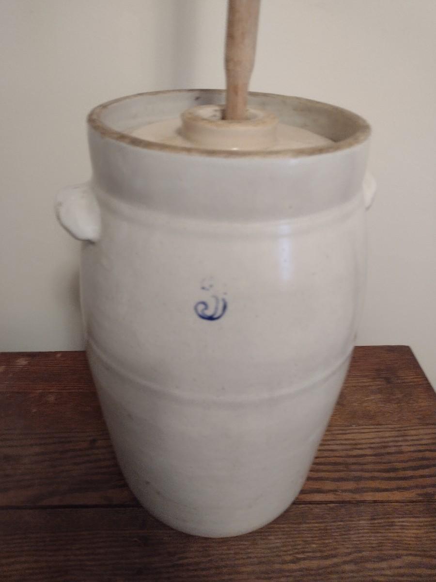Salt Glaze Pottery #3 Butter Churn Crock with Double Ear Handles