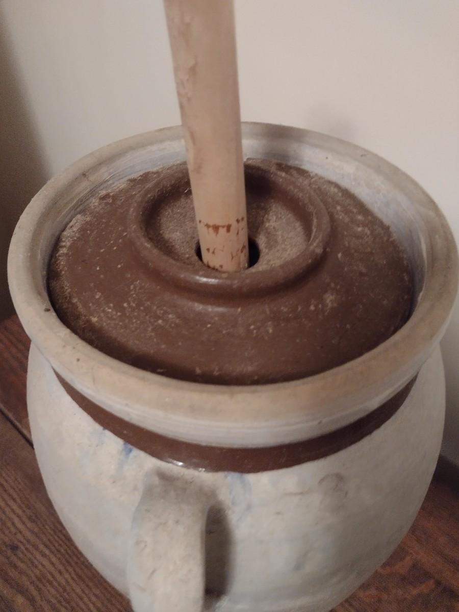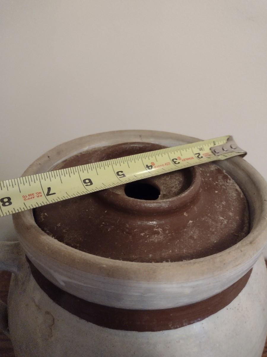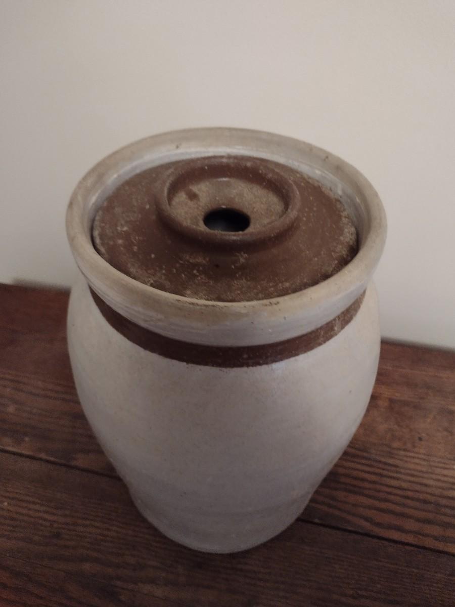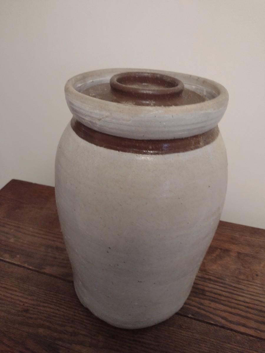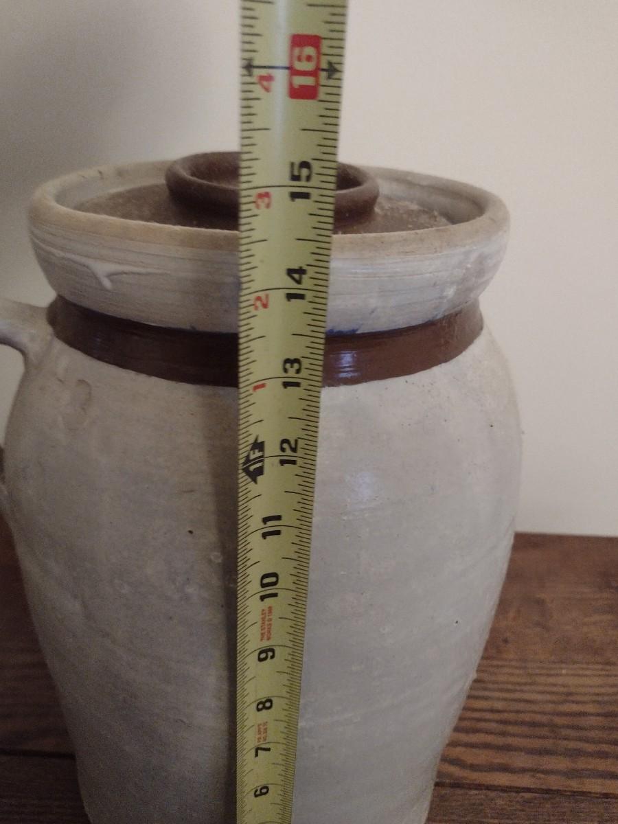 Salt Glazed Pottery #3 Butter Churn Crock with Hand Painted Lid and Neck