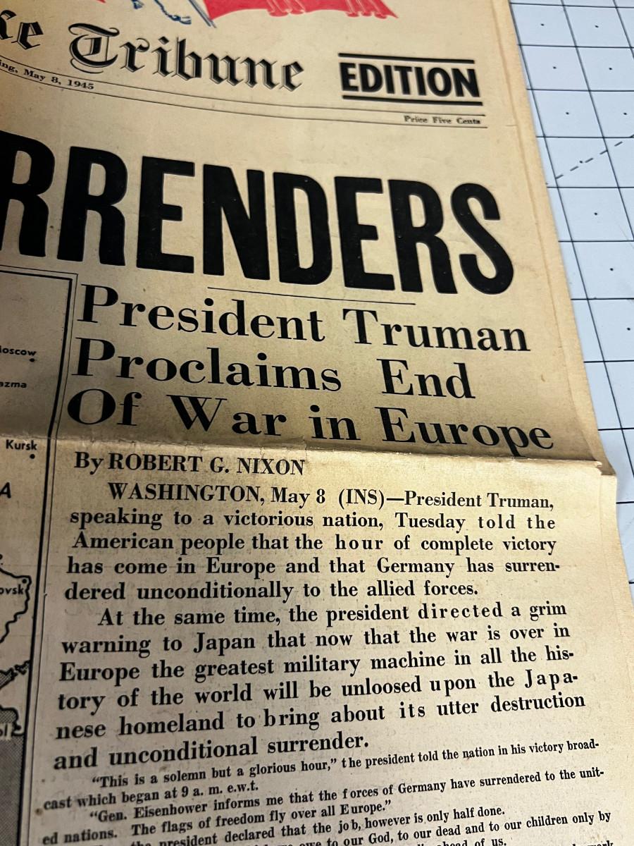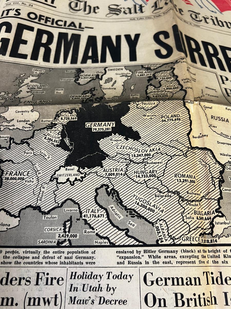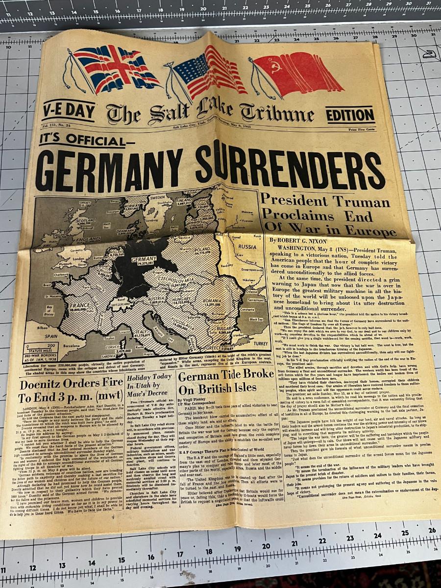 Salt Lake Tribune May 8th 1945 Germany Surrenders