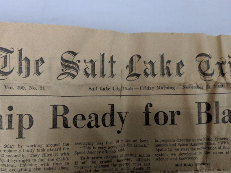 Salt Lake Tribune Moonship Blastoff Nov. 14, 1969, Vol. 200 No. 31