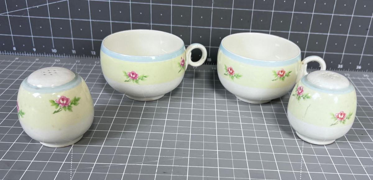 Salt & Pepper plus 2 cup in Bone China with Rose