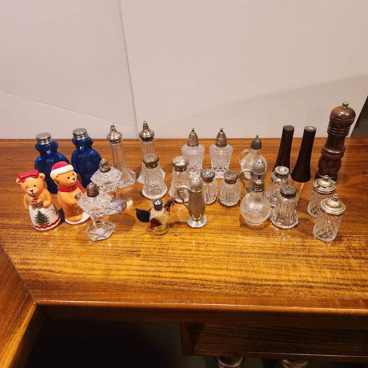 Salt & Pepper Shaker Collection , Bears, Wood, Crystal