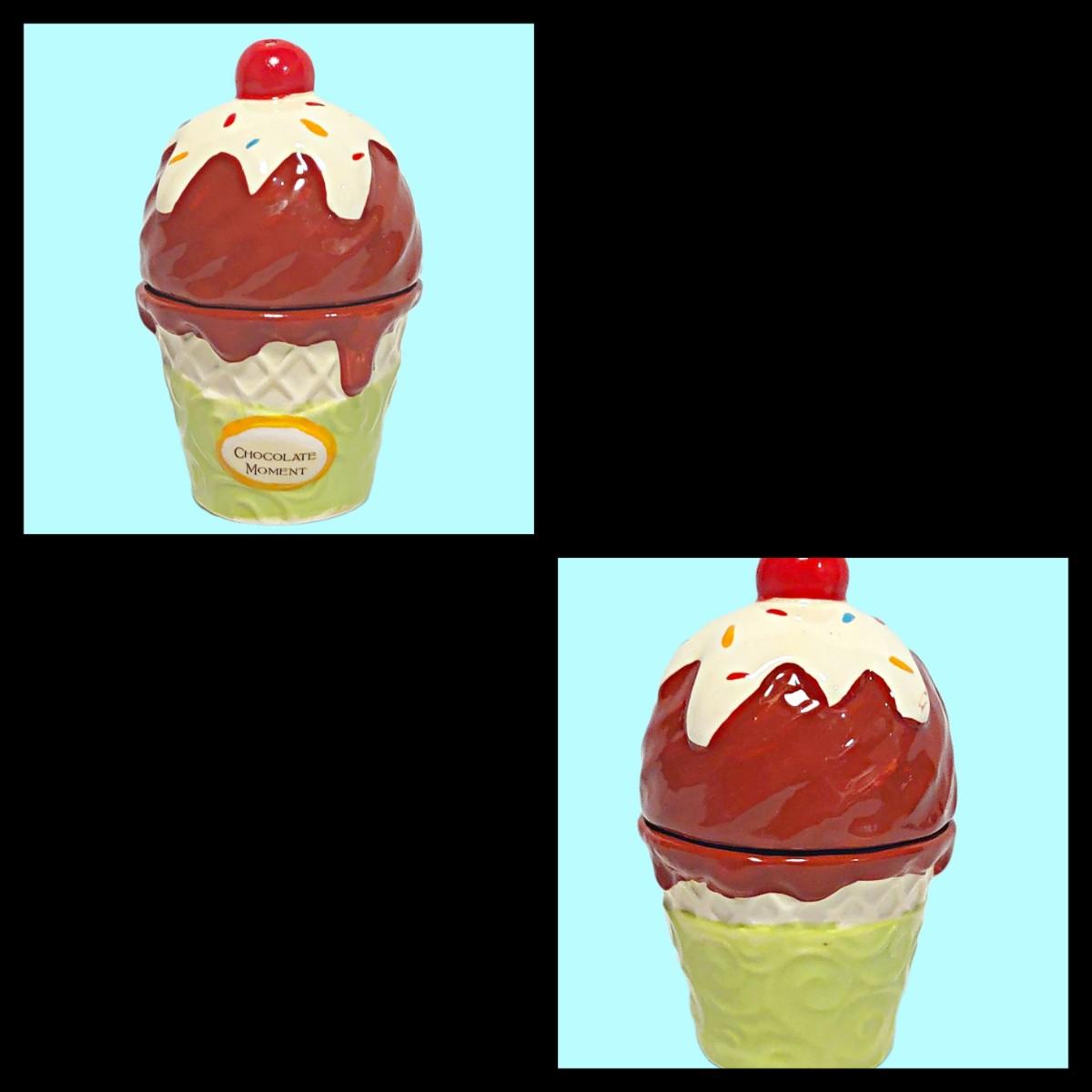 1. Vintage Ice Cream Cone Chocolate Moment Set (Marked "JK" on the Bottom) 2"W x 4"H