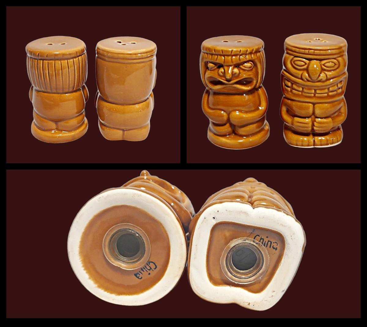 3. Vintage Dolomite Tiki Set (Marked "China" on Bottom) 1.75"W x 3"H