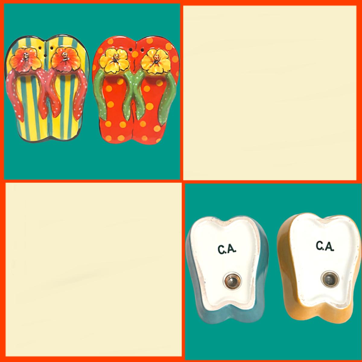 Clay Art Stoneware Colorful Flip Flops Set (Marked CA on Bottom)