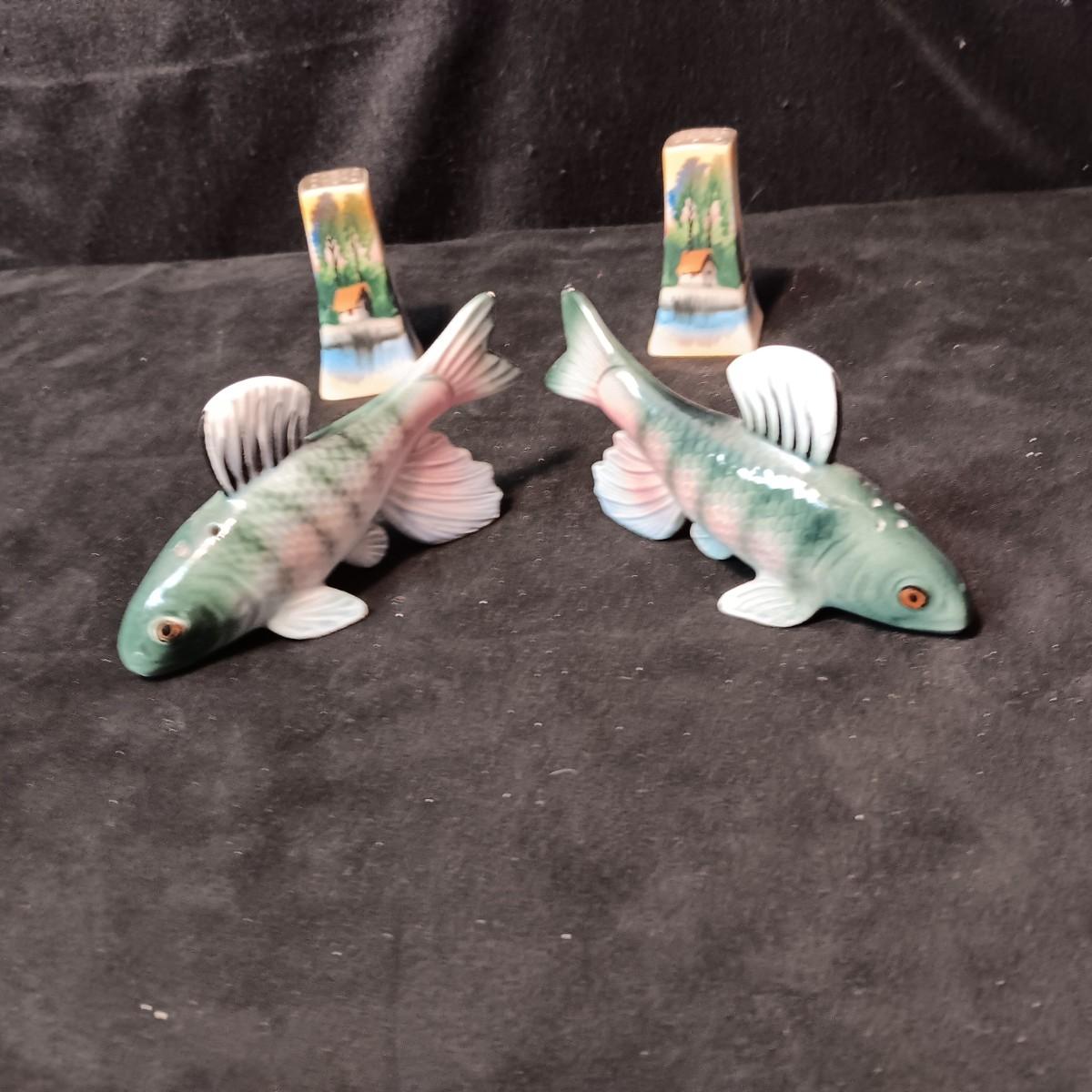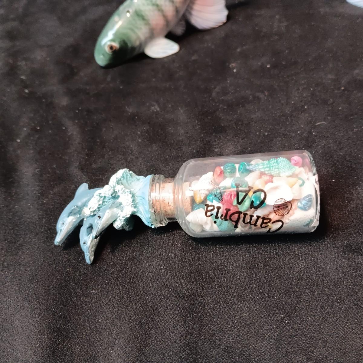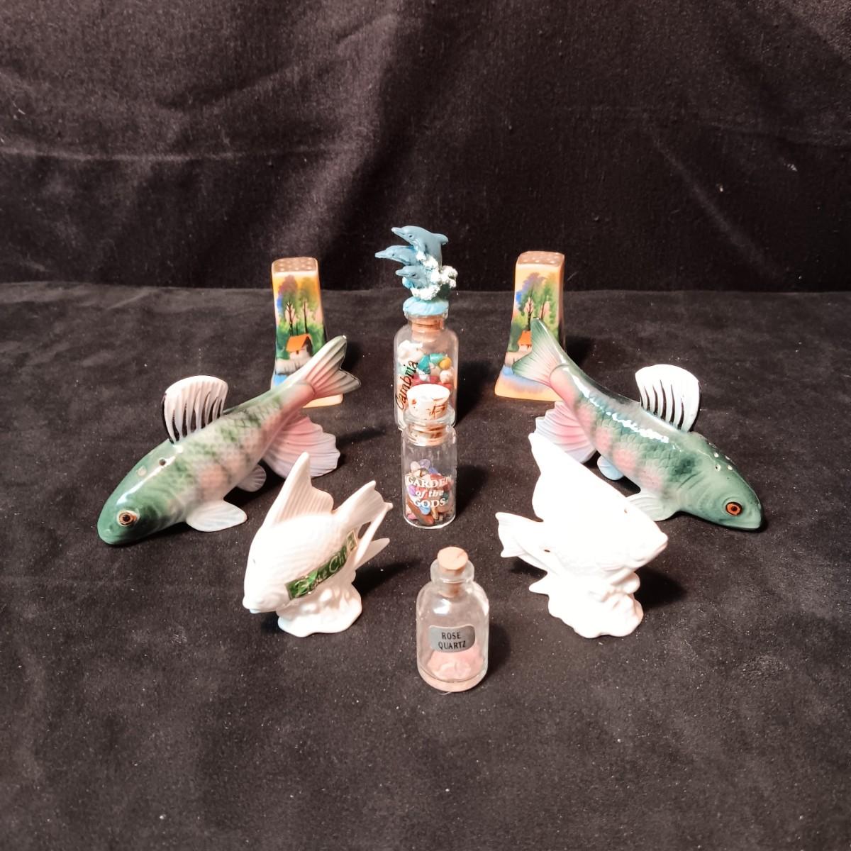 SALT & PEPPER SHAKERS PLUS SEASHELLS IN A BOTTLE