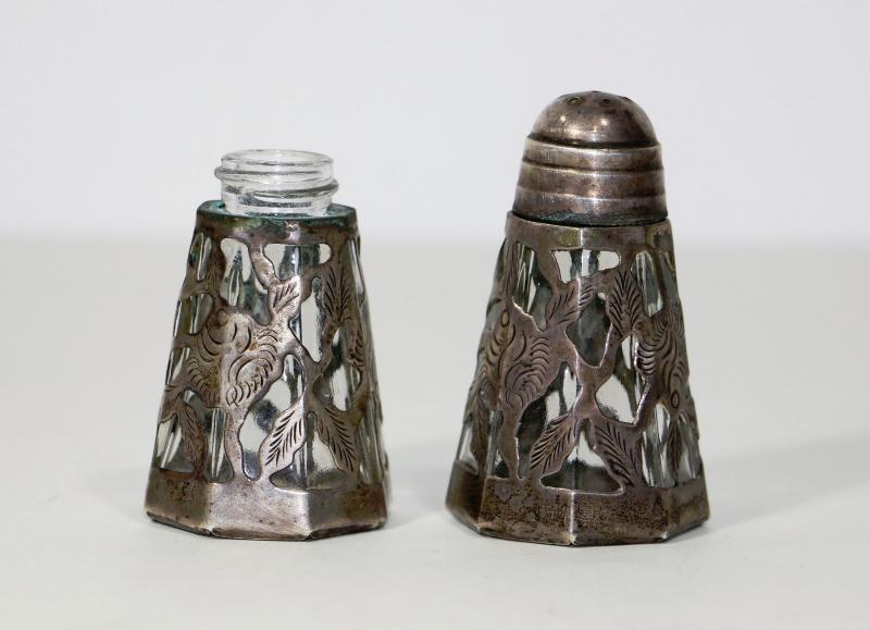 Salt & Pepper Shakers Set - 0.925 Sterling Silver Overlay Mexico.