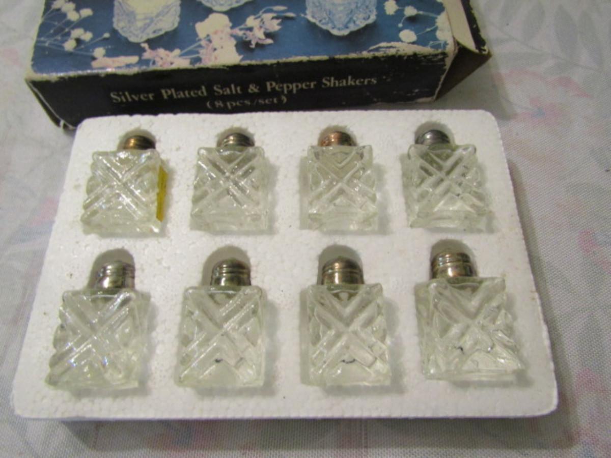 Salt & Pepper Shakers with Silver Plated Tops- 8 Piece Set