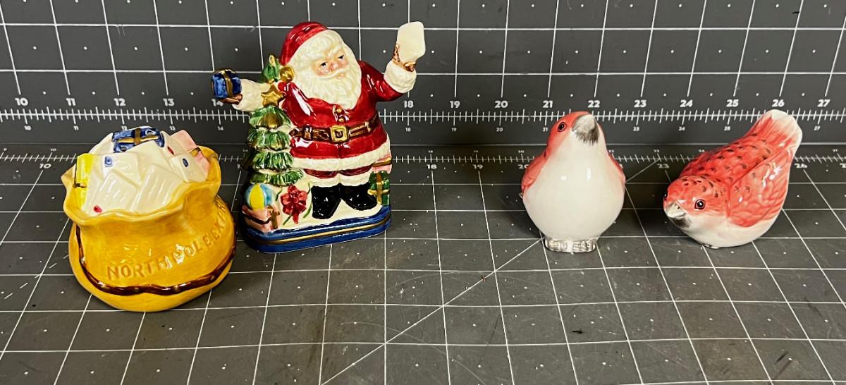 Salt & Peppers of Santa And Toy Sack Plus 2 pink birds