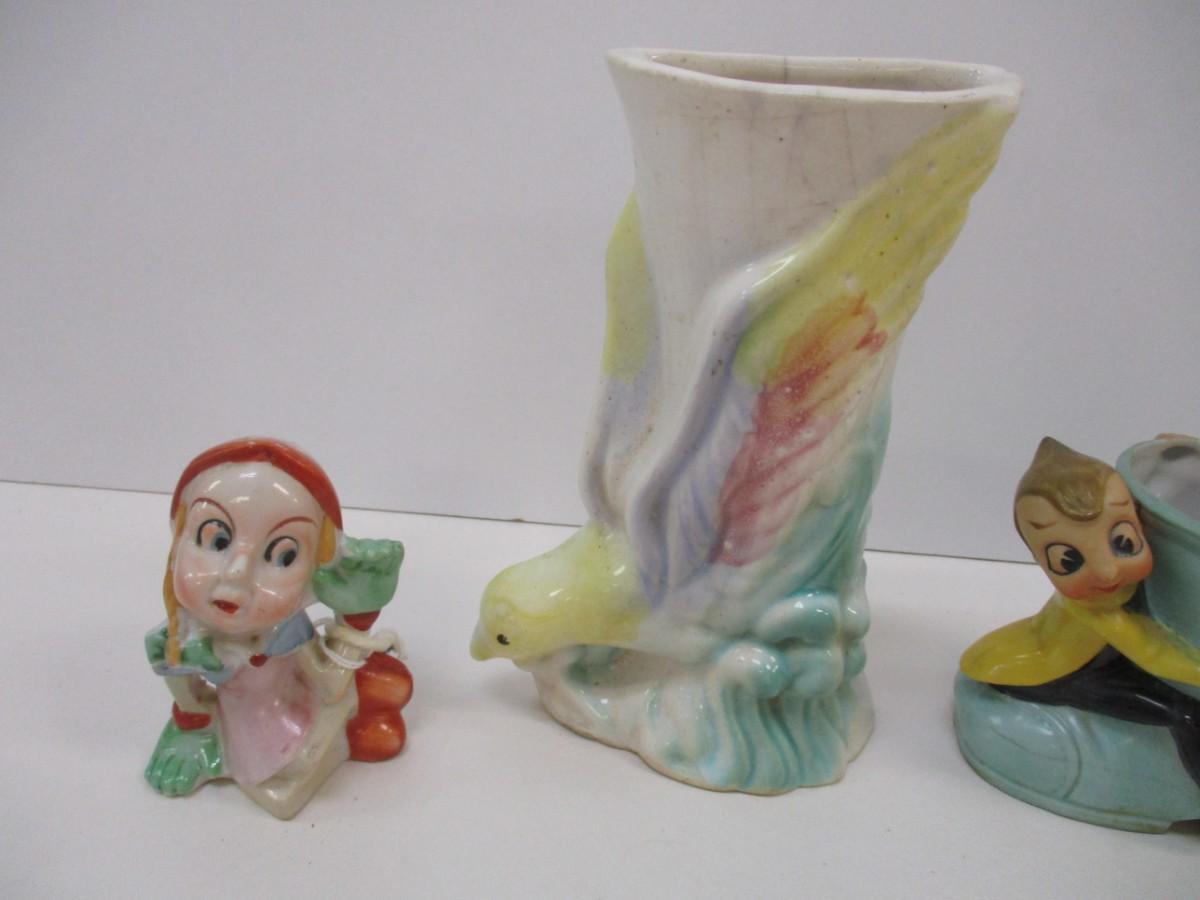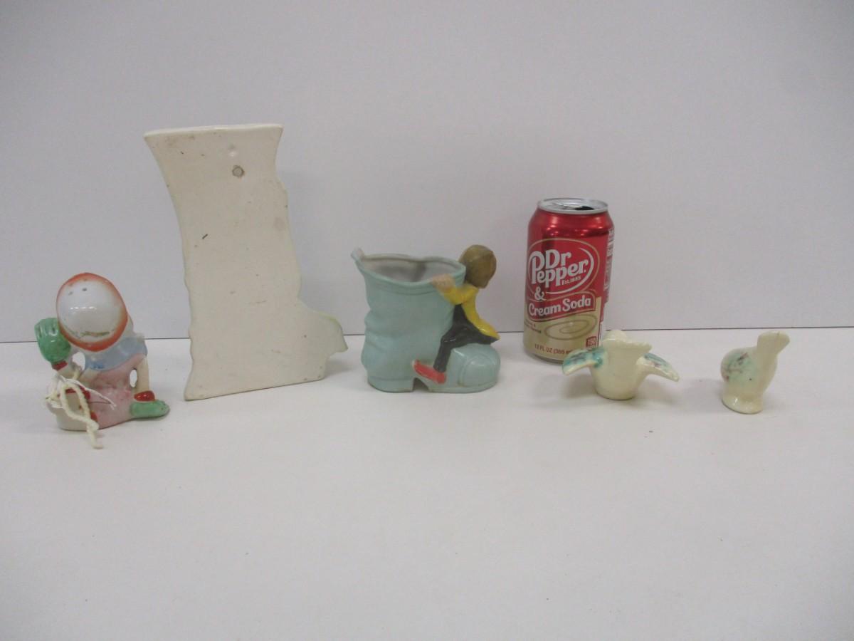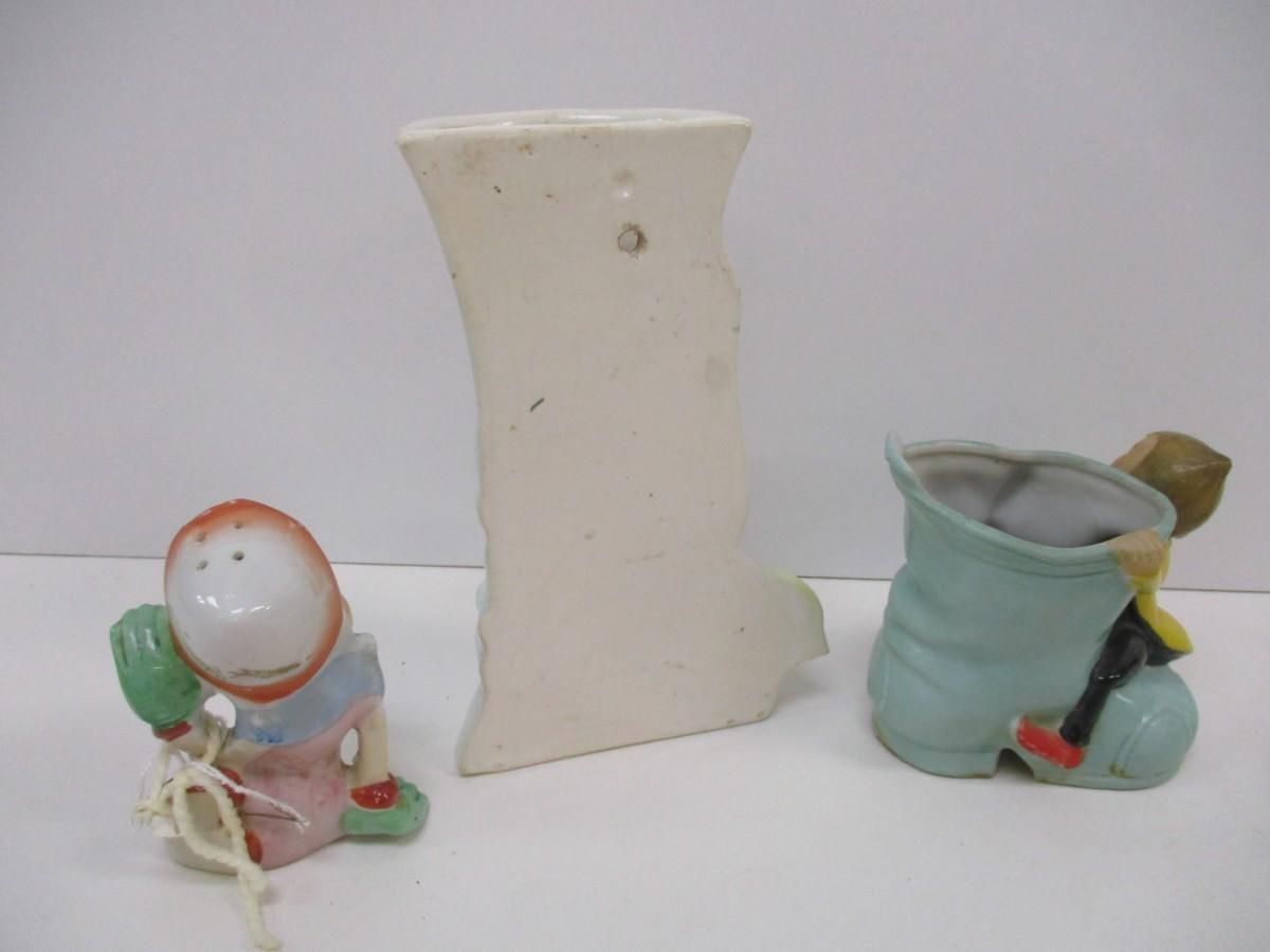 Salt Shaker Dutch Girl Wall Pocket Planter Love Birds Japan Elf Pixie Boot Planter