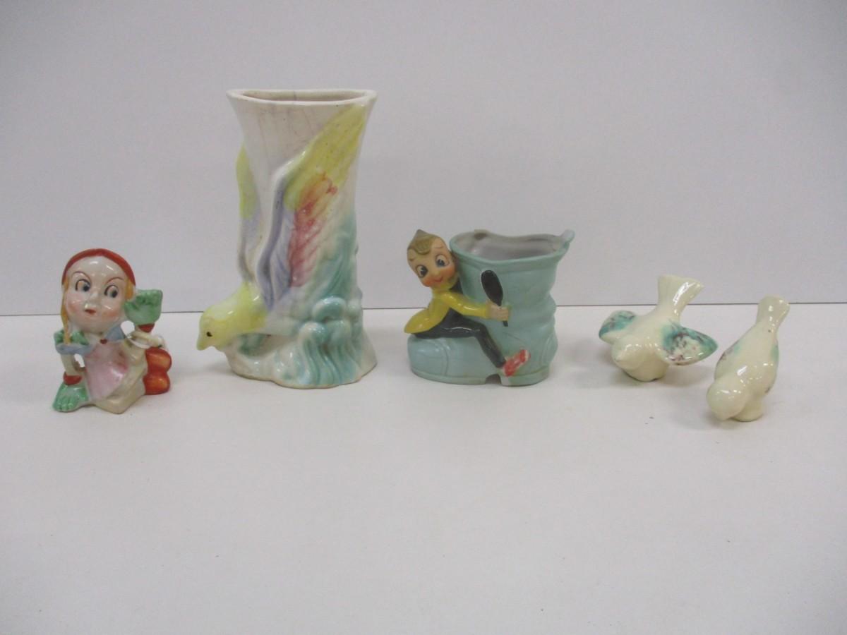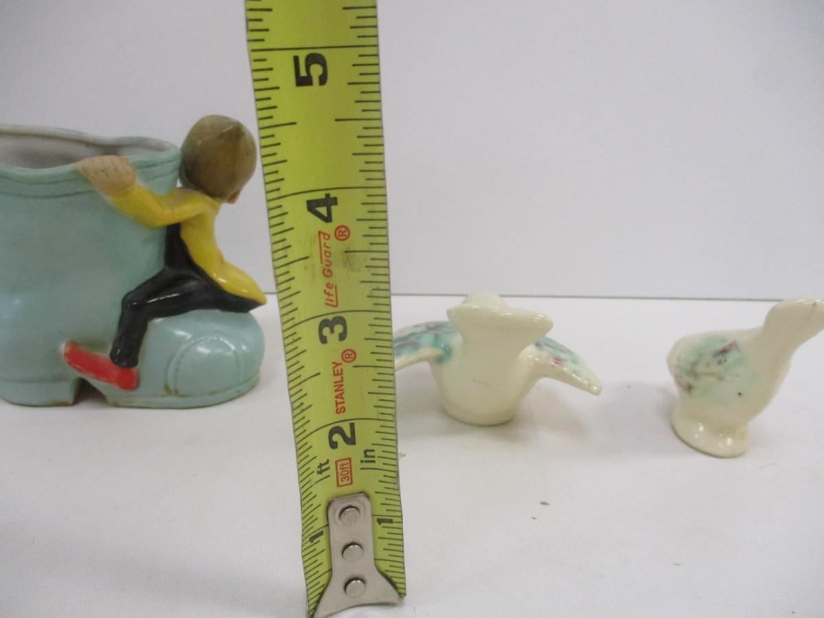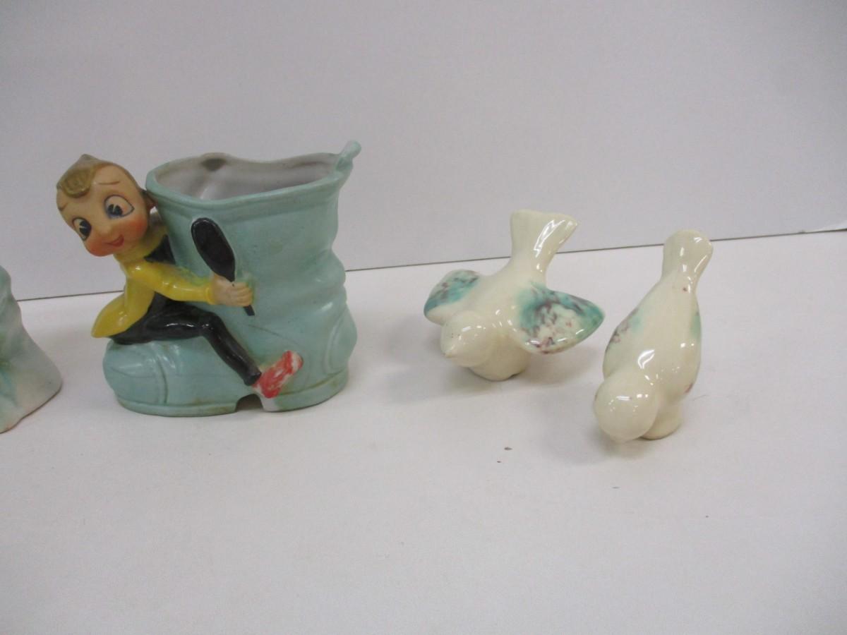 Salt Shaker Dutch Girl Wall Pocket Planter Love Birds Japan Elf Pixie Boot Planter