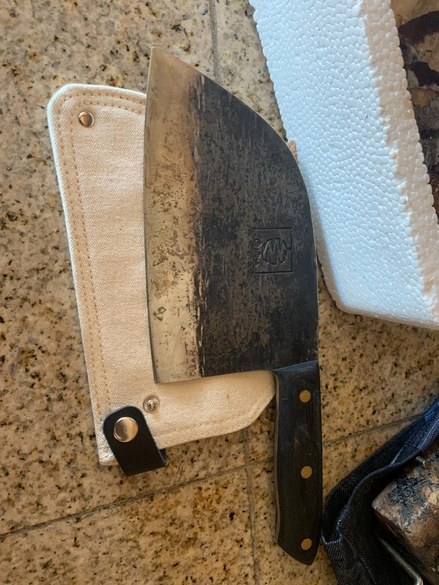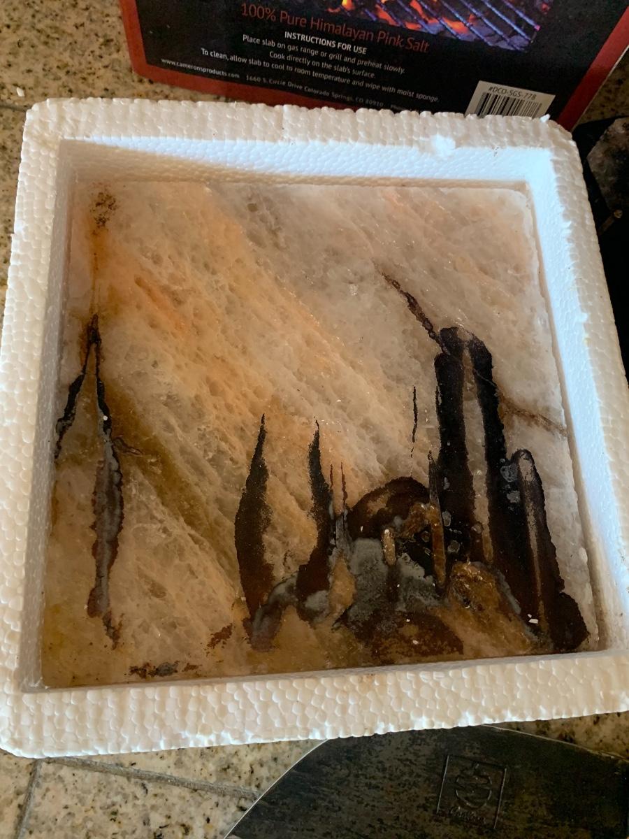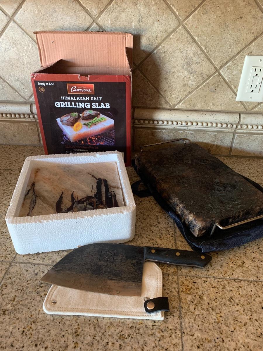 Two Himalayan salt slabs and one Coolina knife. In good condition