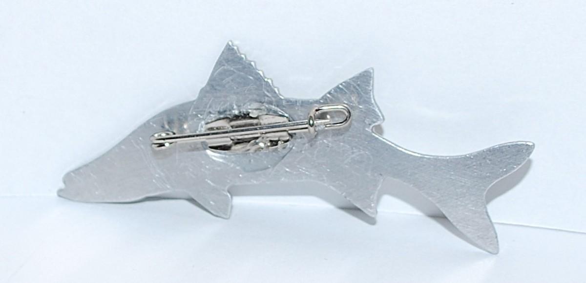 Salt Water FISH BROOCH (2½" x ½") on Thin Metal and Silver Tone Setting