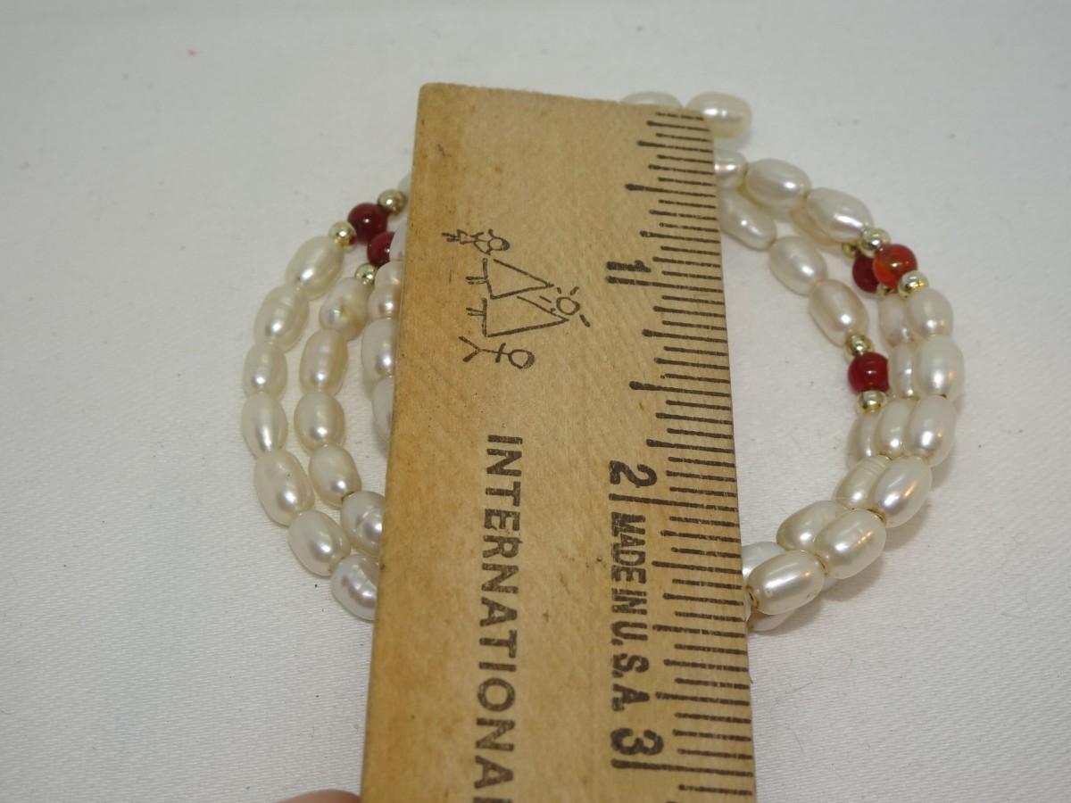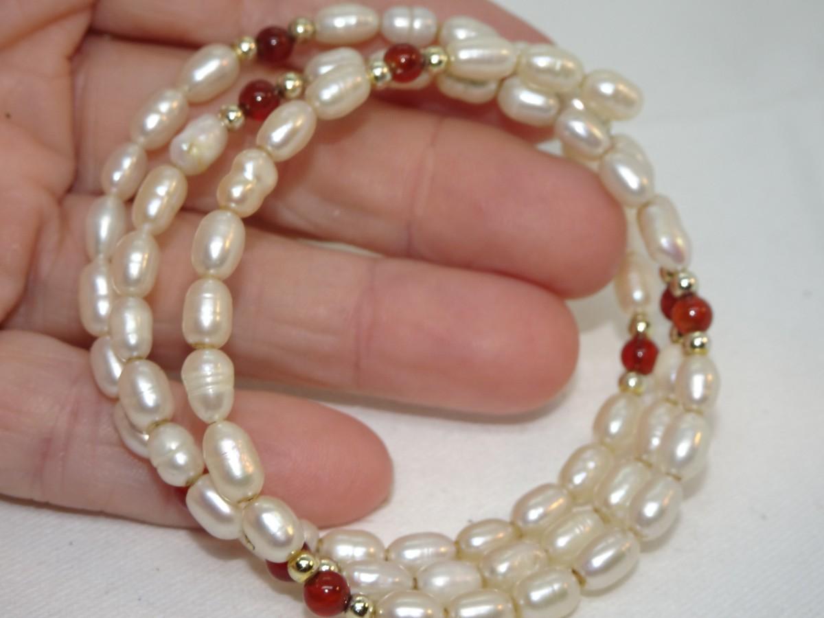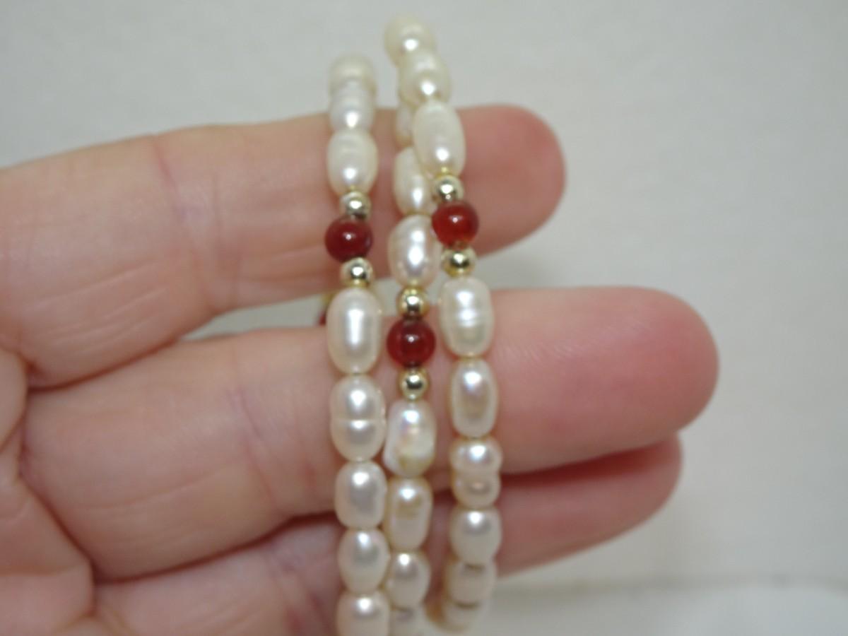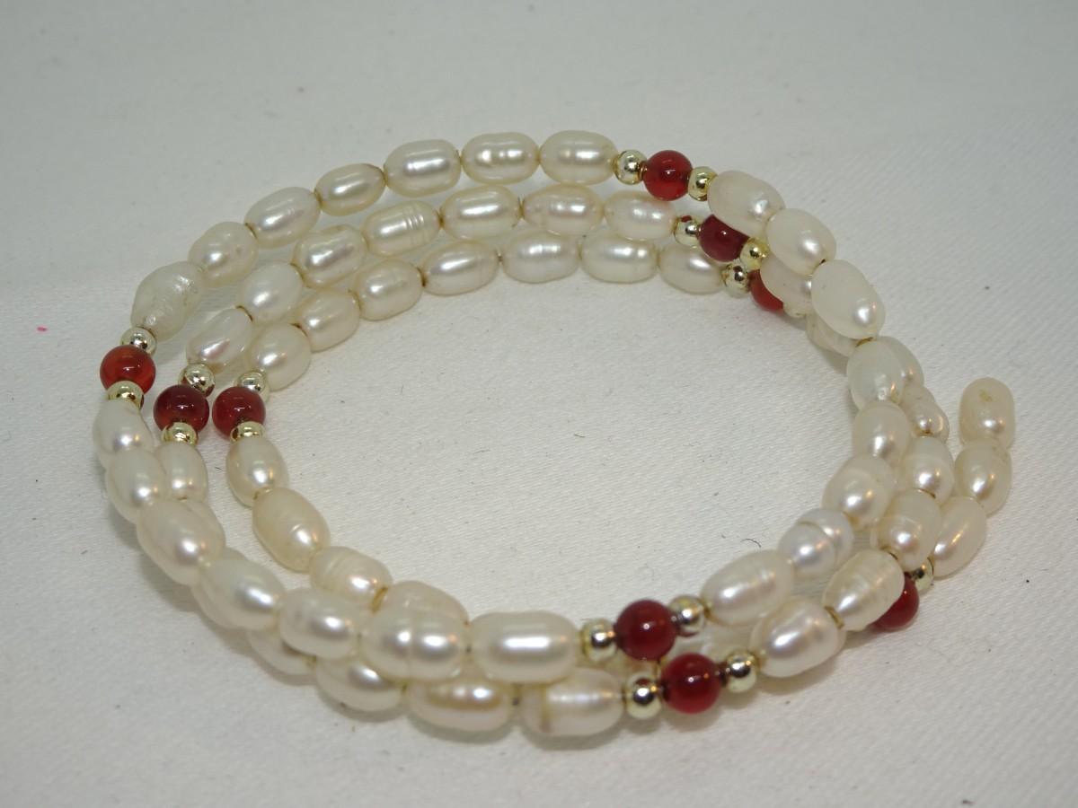 Salt Water Pearls Wire Wrap Bracelet, maybe Carnelian