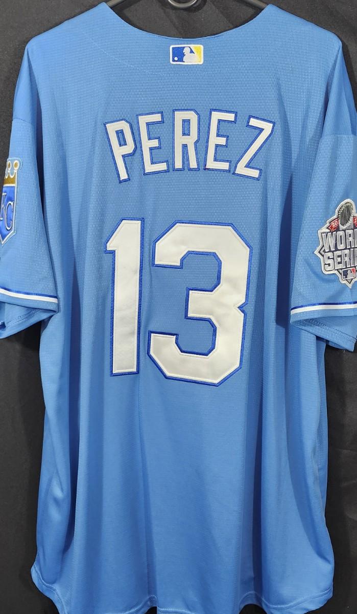 Salvador Perez Kansas City Royals Baby Blue Majestic 2015 World Series Jersey Size XL