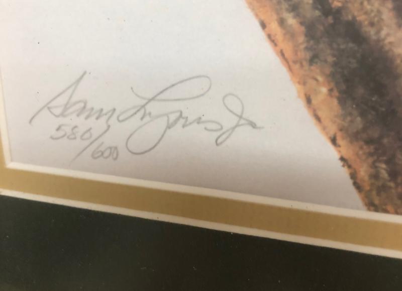 Here is a signed and numbered 90/580 aviation art print by Sam Lyons Jr...entitled "Morning Reflections" it features a Stinson 108 float plane...32 x 24"...Framed....COA on back....