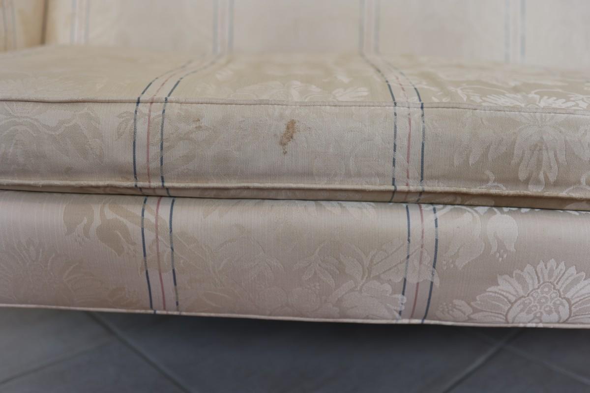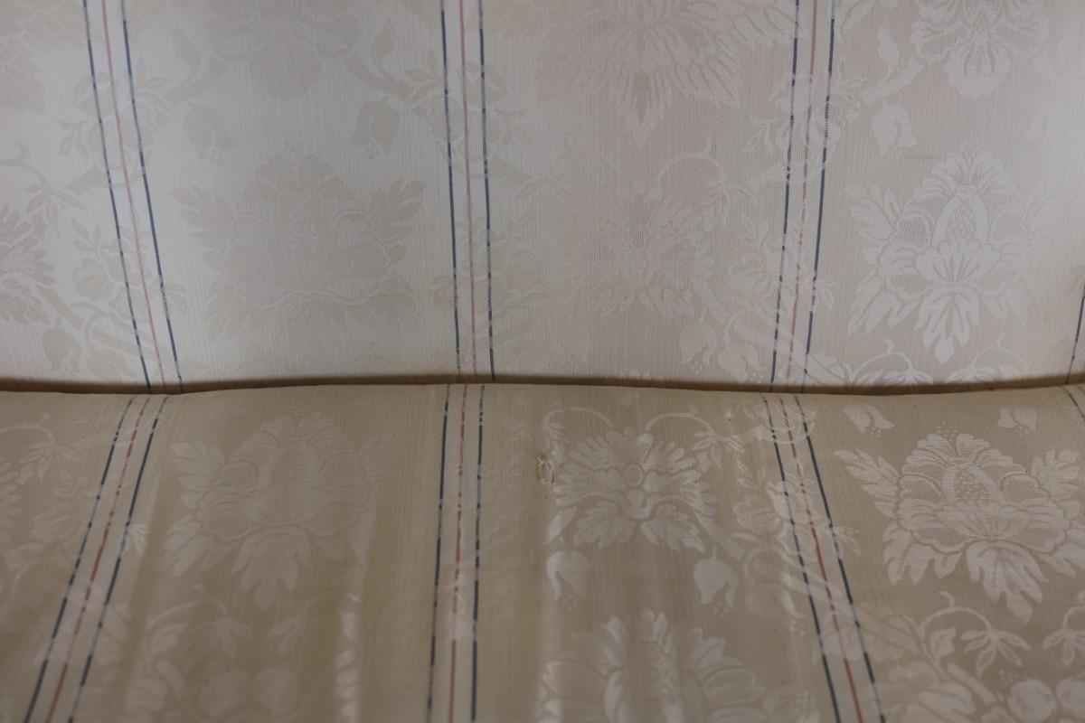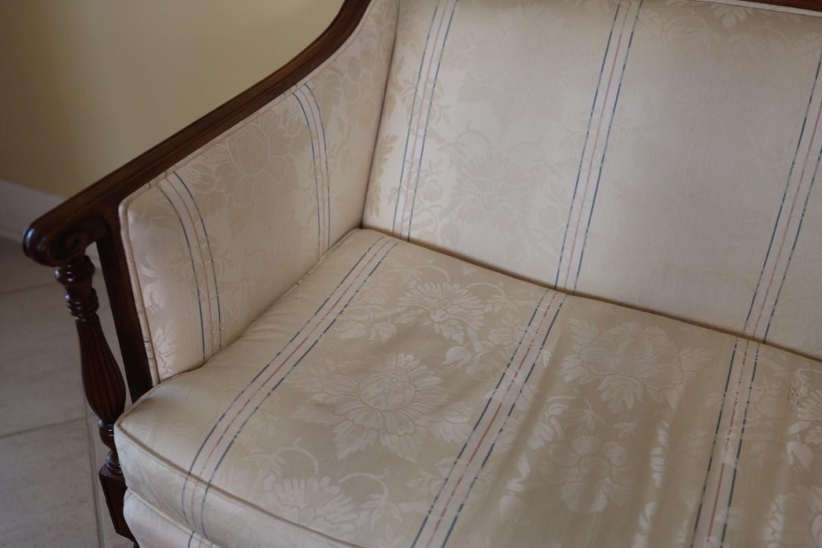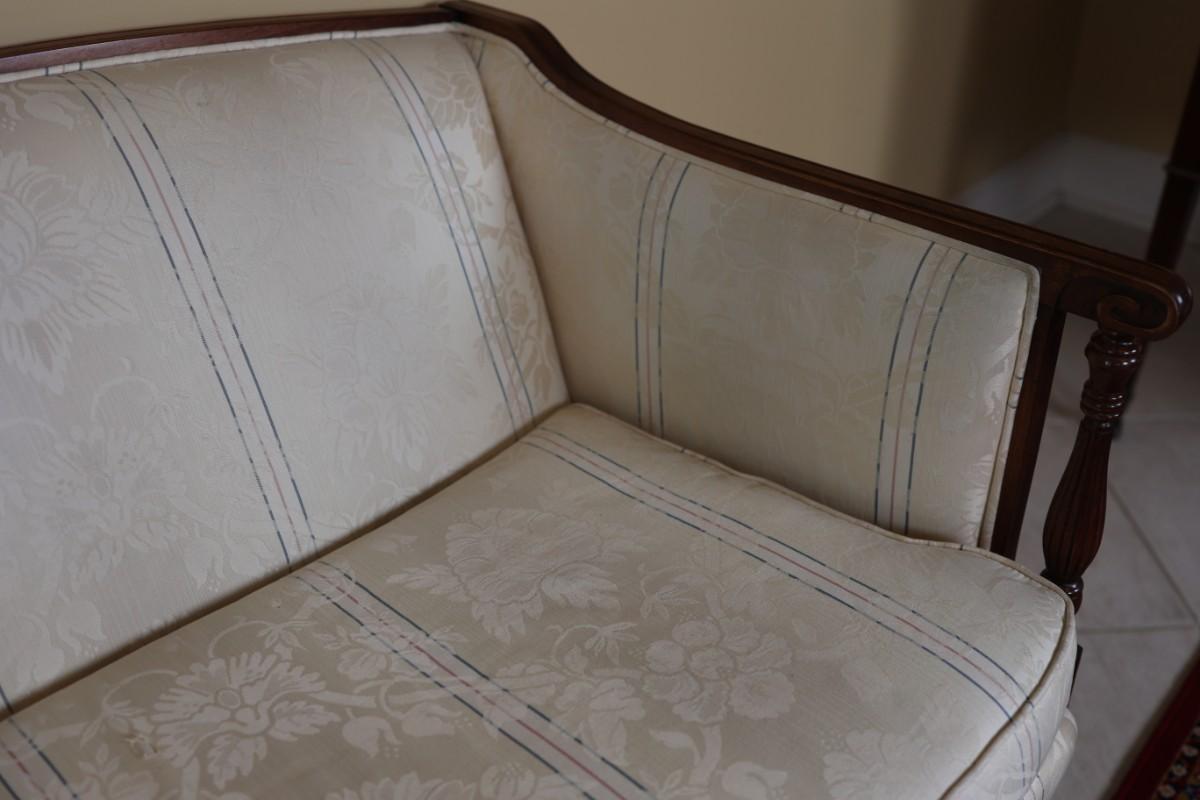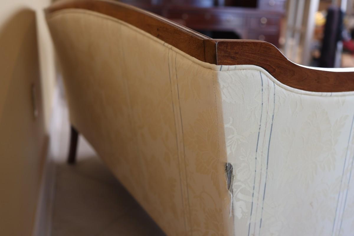 There is a tear on the fabric, see pictures. See pictures of any wear on fabric/wood.