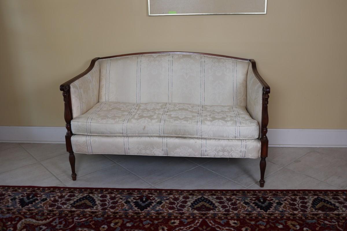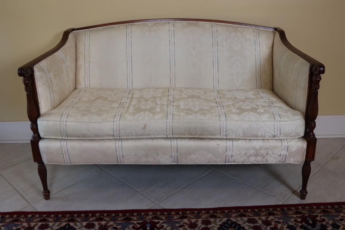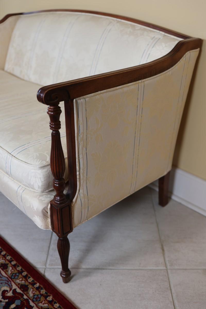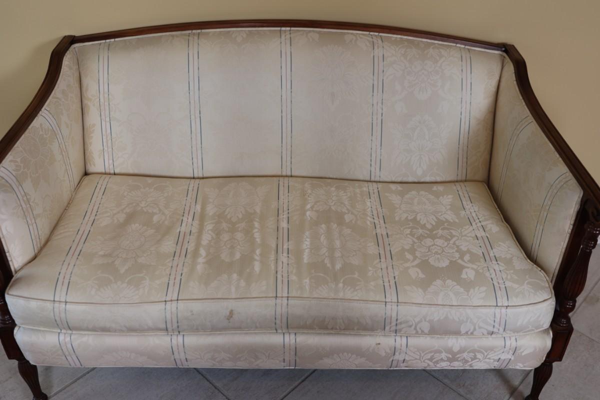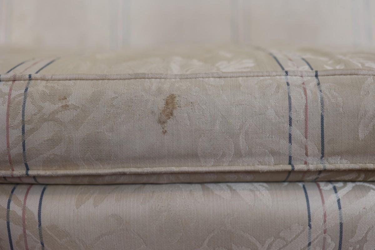 There is a tear on the fabric, see pictures. See pictures of any wear on fabric/wood.