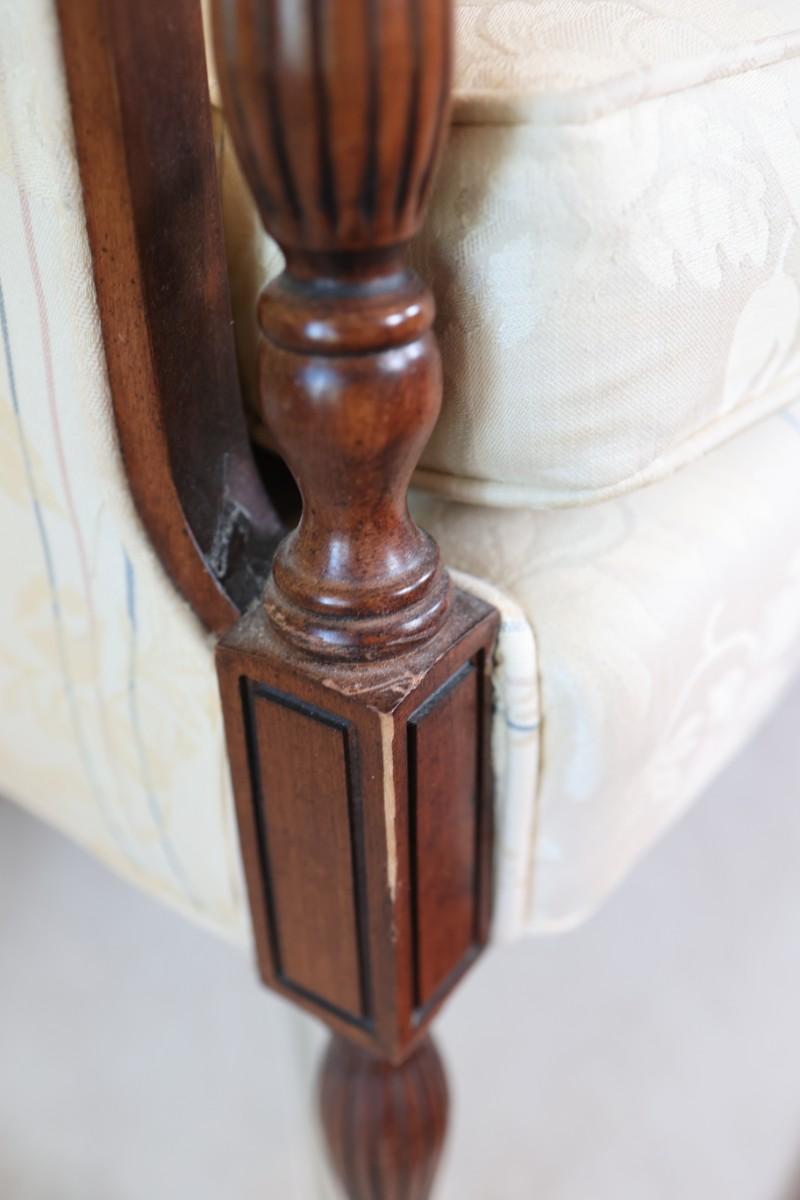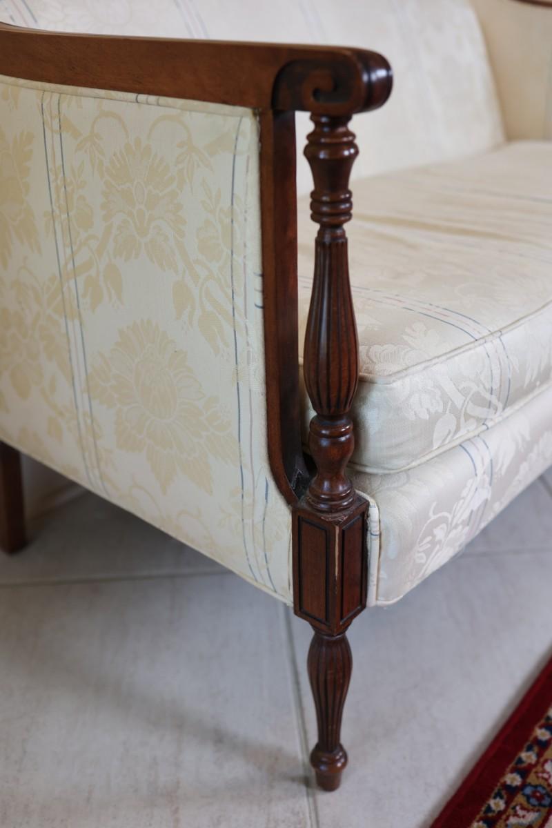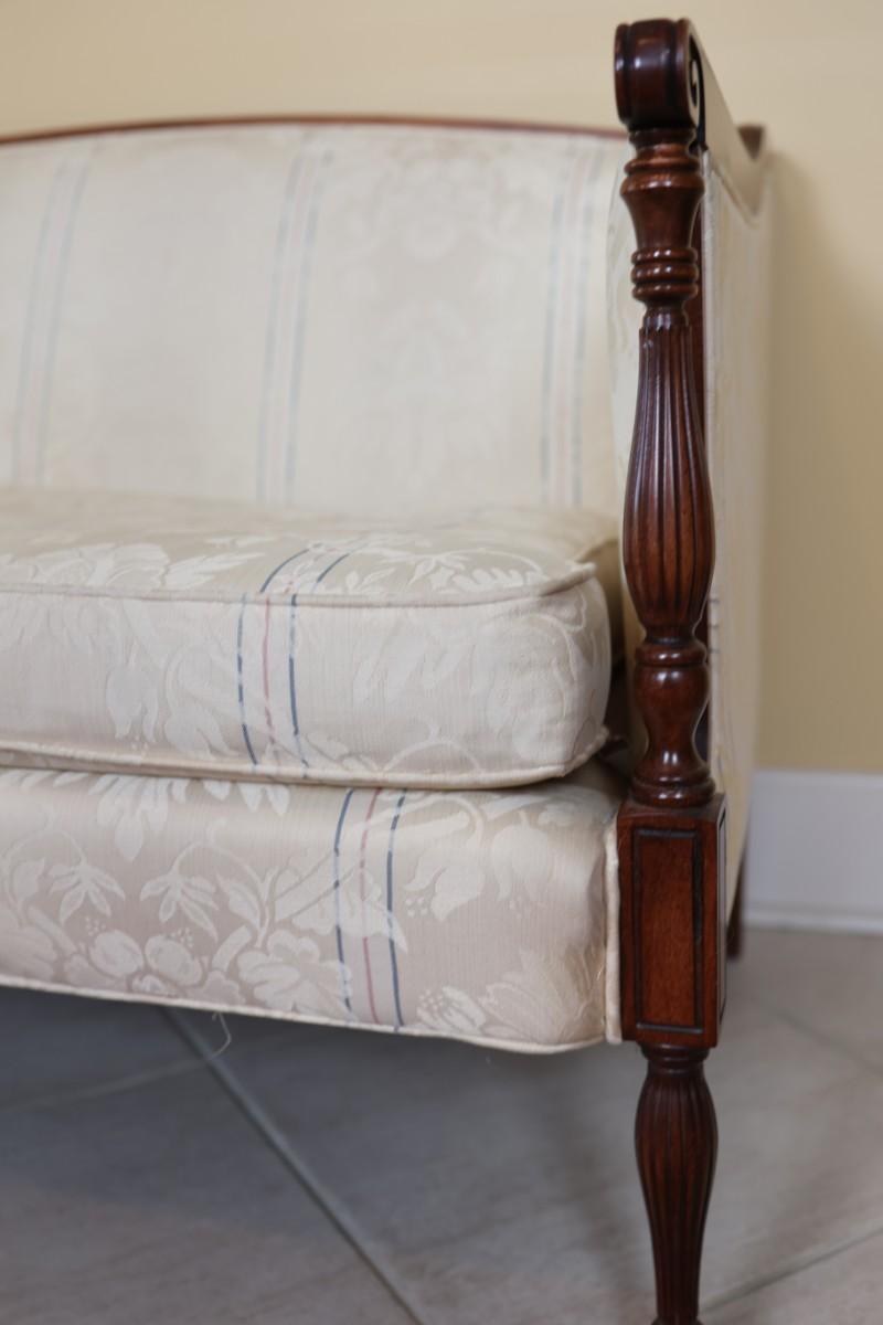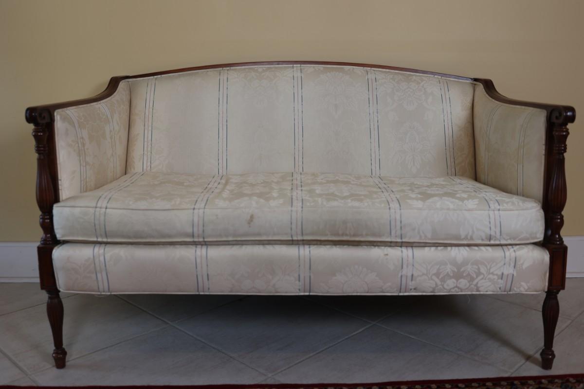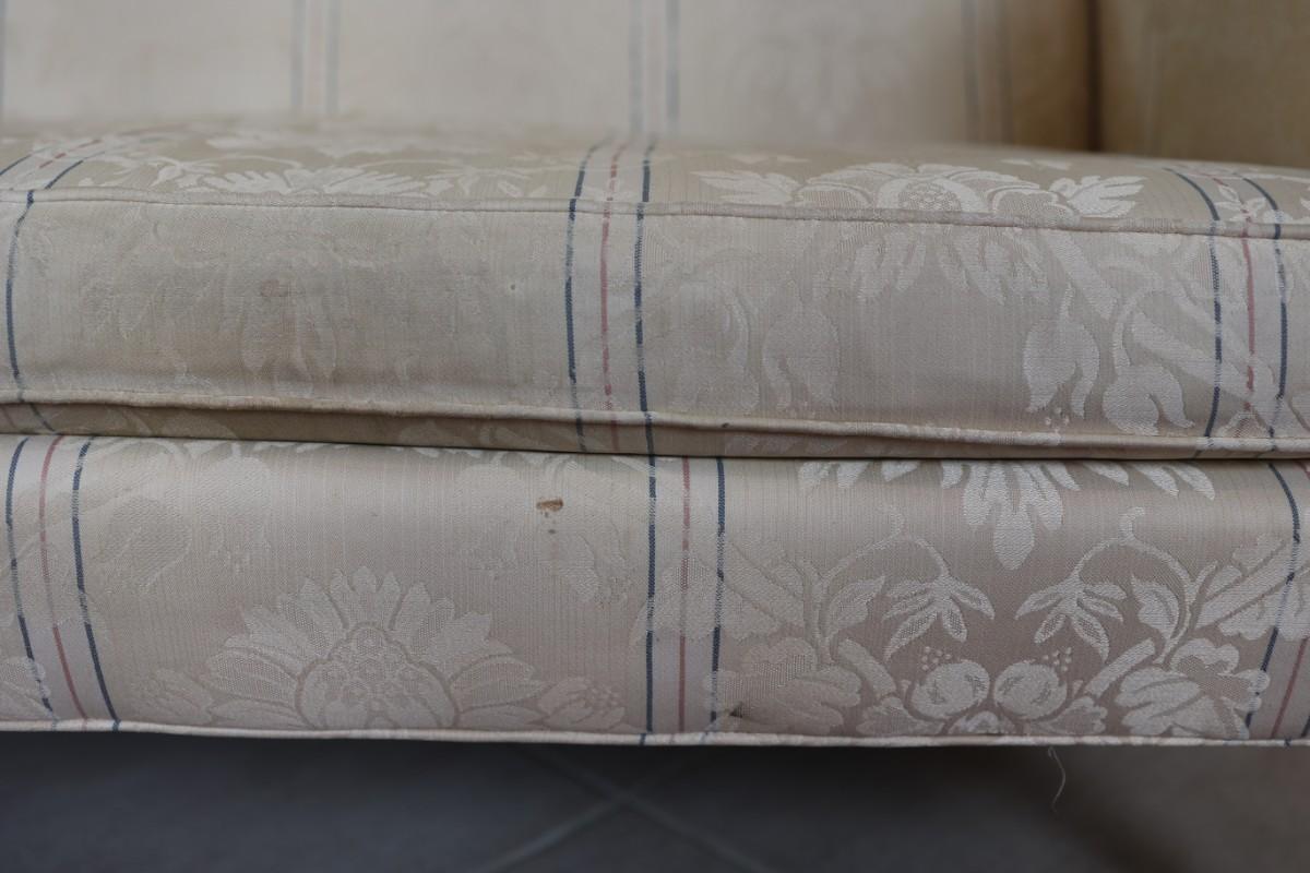 There is a tear on the fabric, see pictures. See pictures of any wear on fabric/wood.