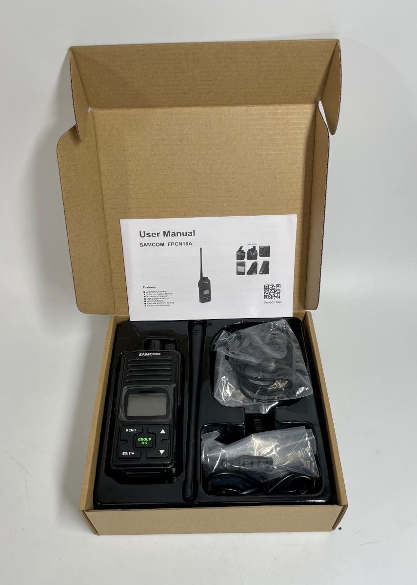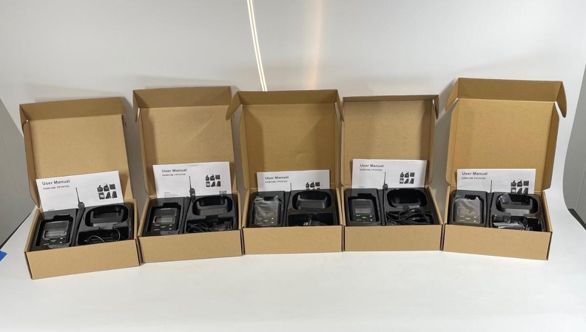 SAMCOM FPCN10A Two Way Radios Long Range 3000mAh Heavy Duty Walkie Talkies - Lot of 5, 3 Are new in box. All accessories included: wired earphone, belt clip, recharging base. Also 1 wired hand microphone, new in box.