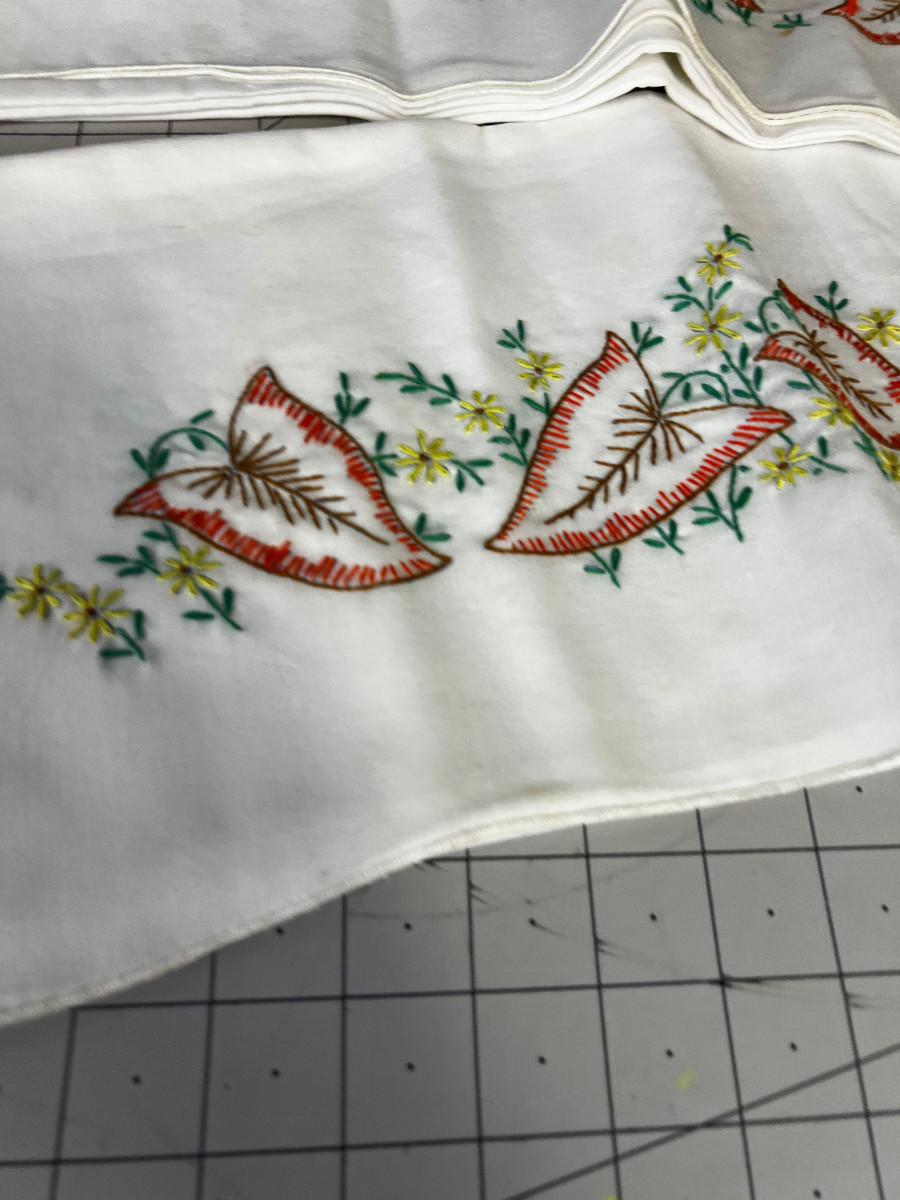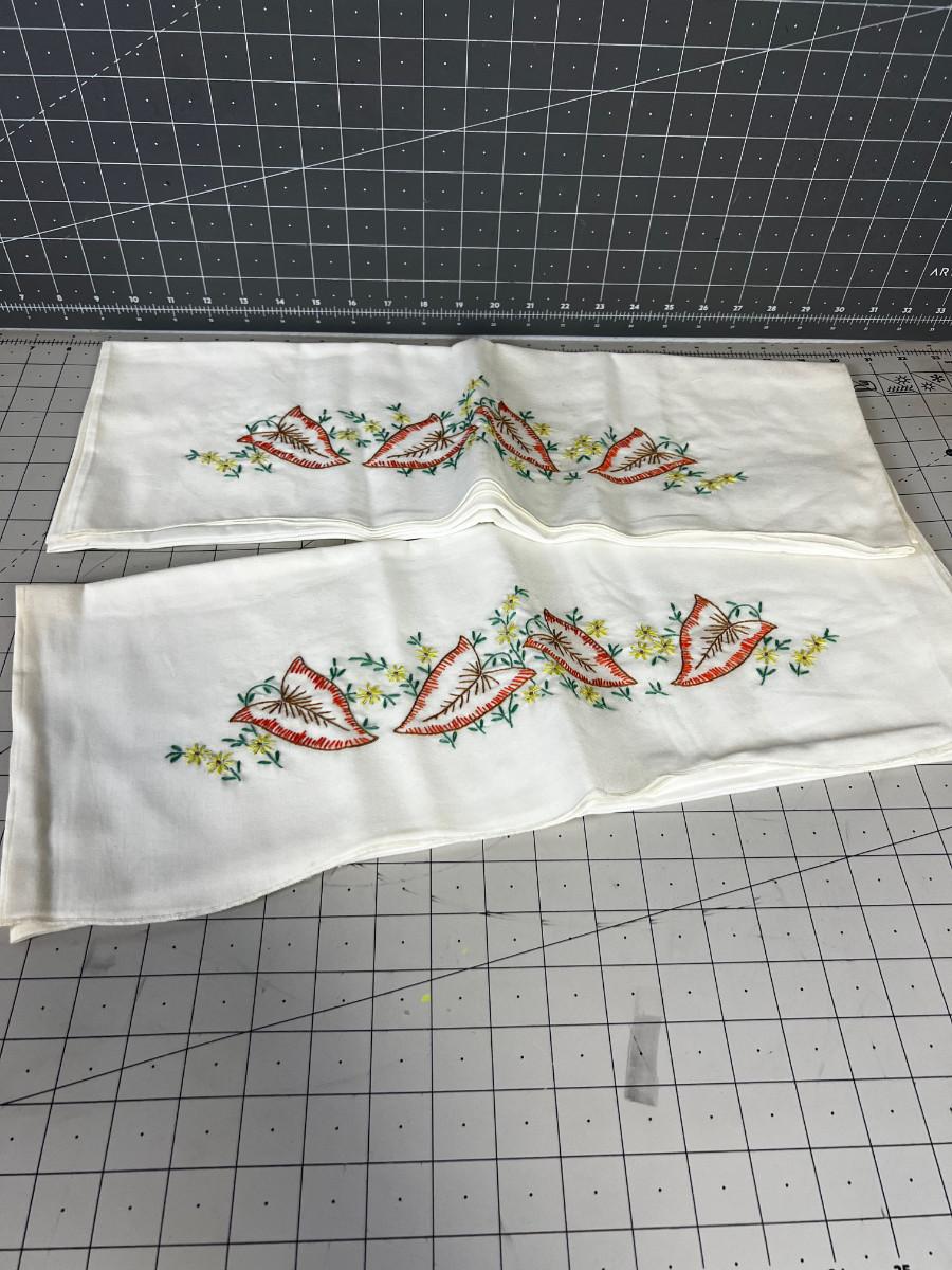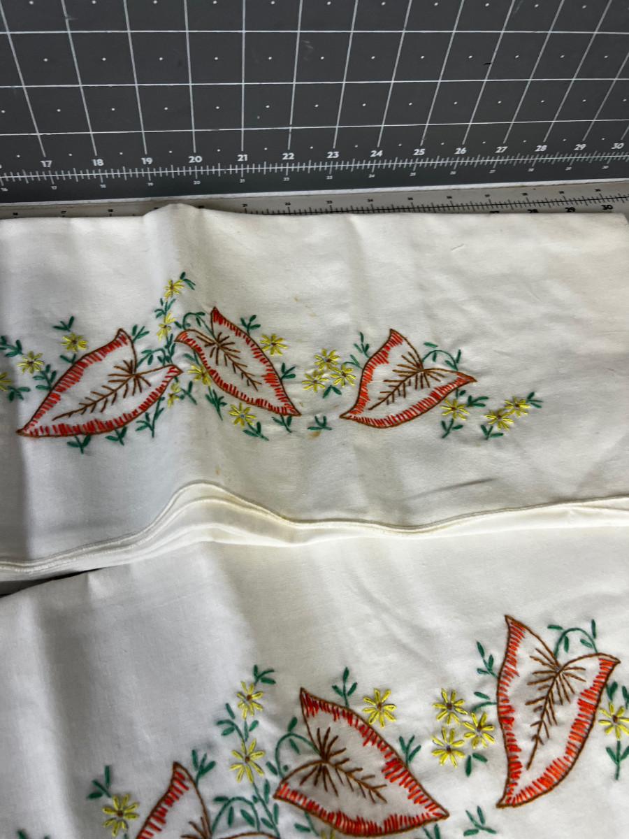 Same Pair of Embroidered Orange & brown Leaf Pillow Cases Std Size