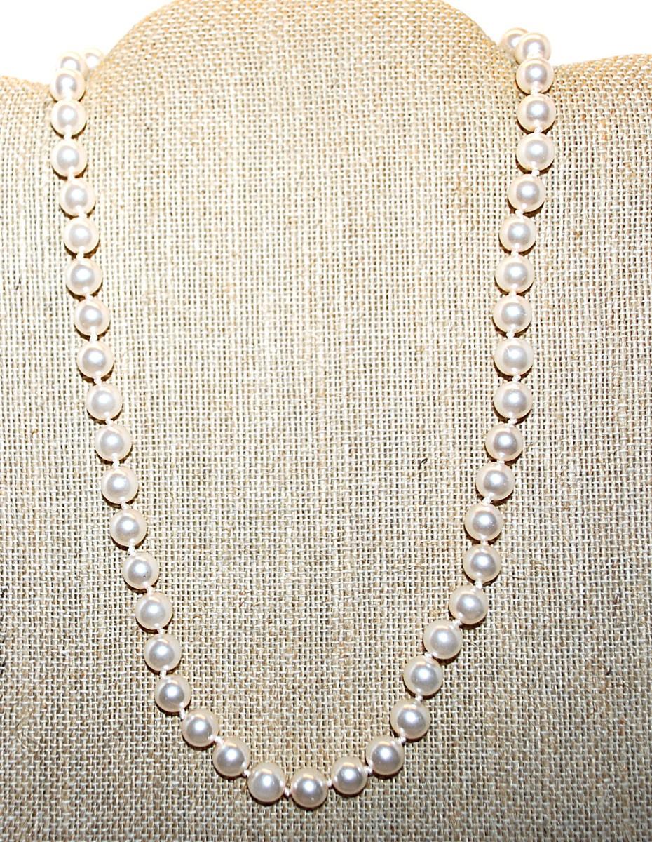 Same Size White Faux PEARLS NECKLACE with Gold Tone LOOP-AROUND Clasp 18" L