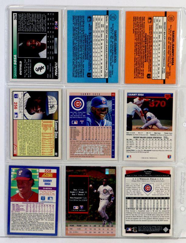 SAMMY SOSA BASEBALL CARDS SET OF 9 - MINT