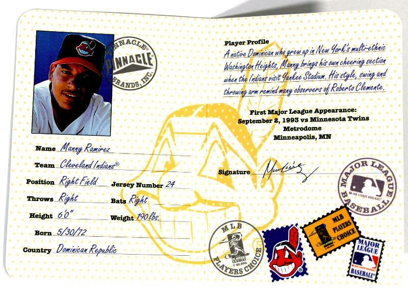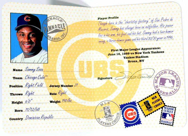 Set of 2 RARE 1997 Pinnacle Baseball Cards Inserts - Passport To The Majors, these are fold out baseball cards designed as passports - both in excellent condition - High Grade - Limited Edition Inserts - Collector's Item!