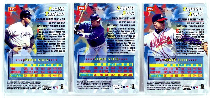CHIPPER JONES FRANK THOMAS SAMMY SOSA 1999 Topps Baseball Power Players Inserts Cards HIGH GRADE