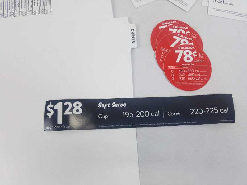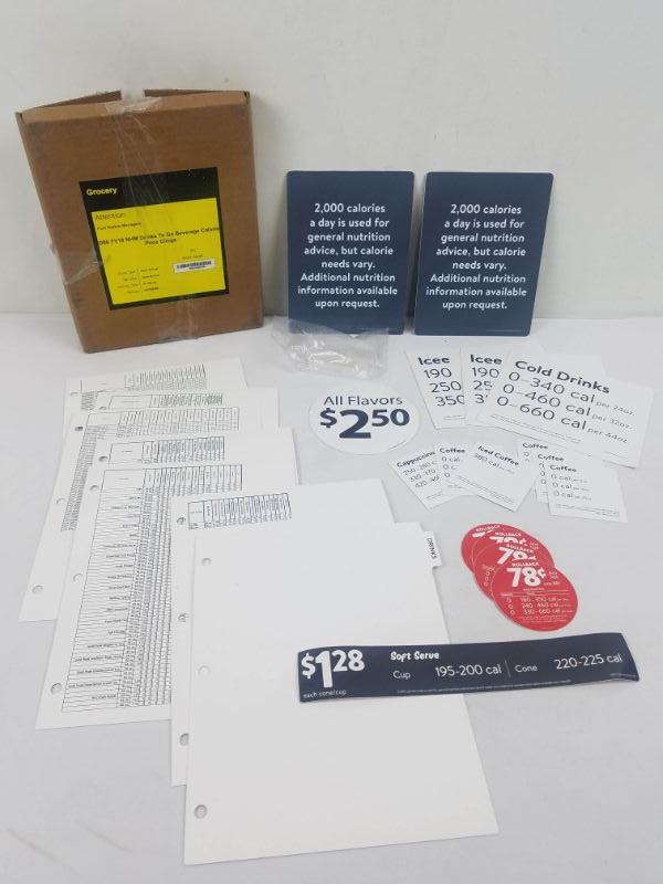 Sam's Club Drink Info Calories & Pricing Sticker & Signage - New