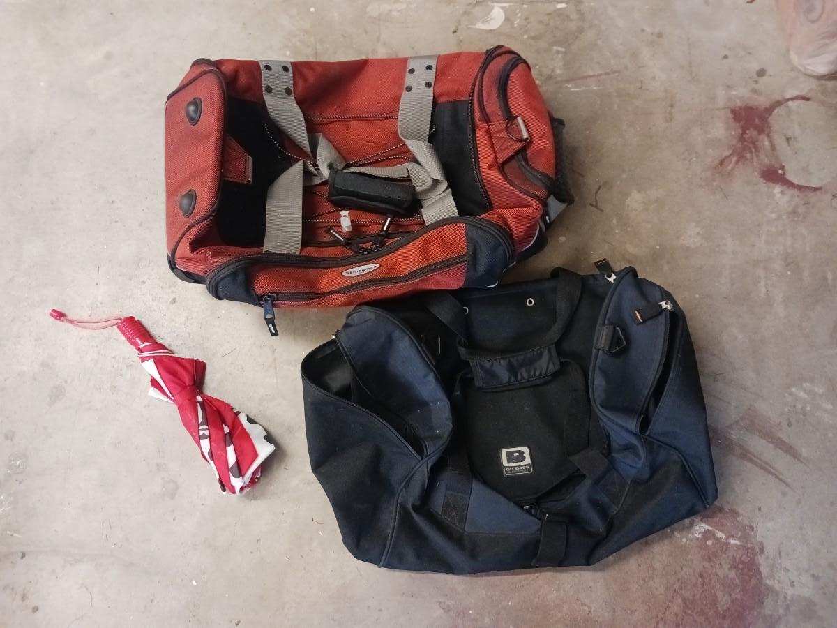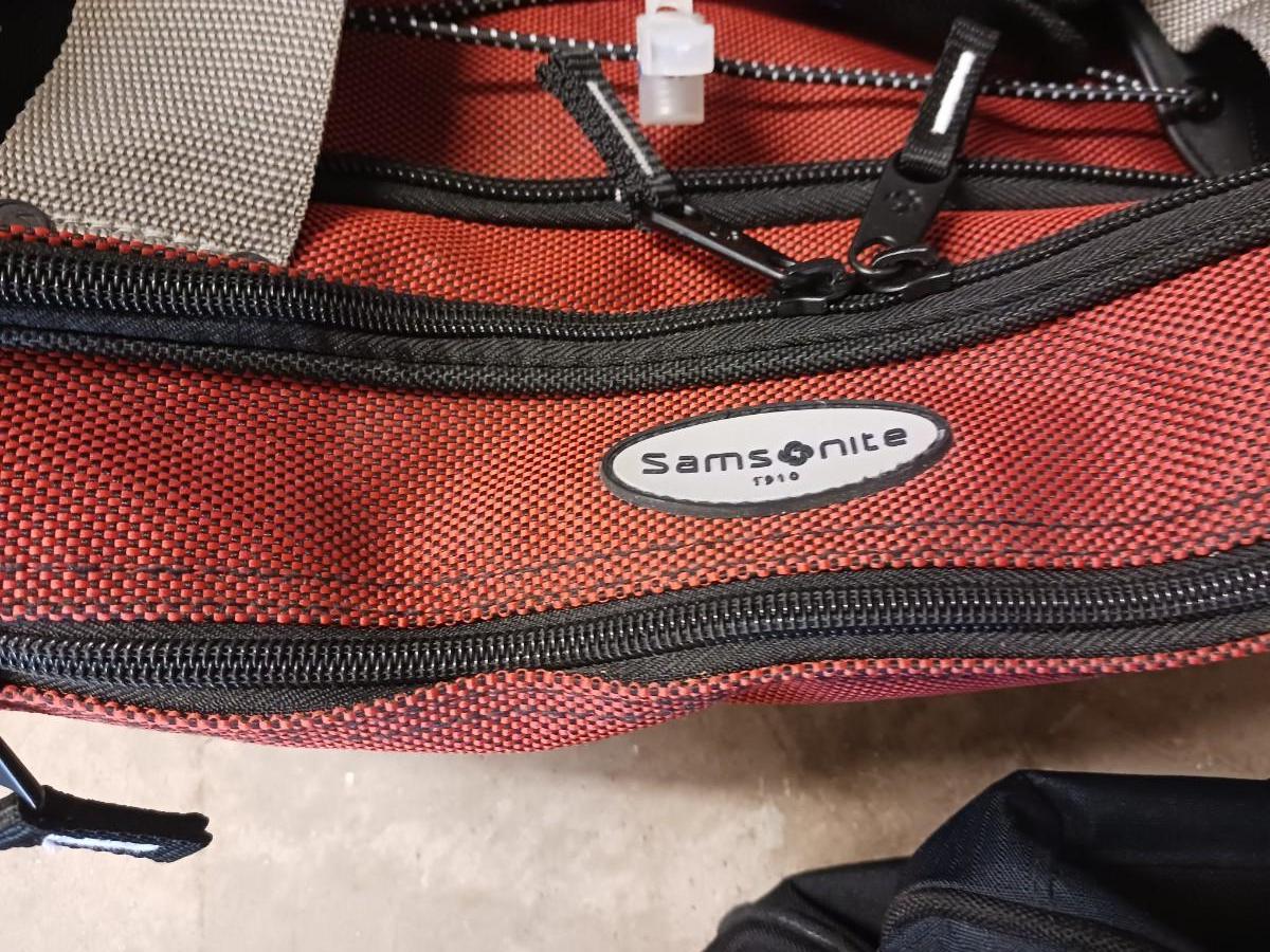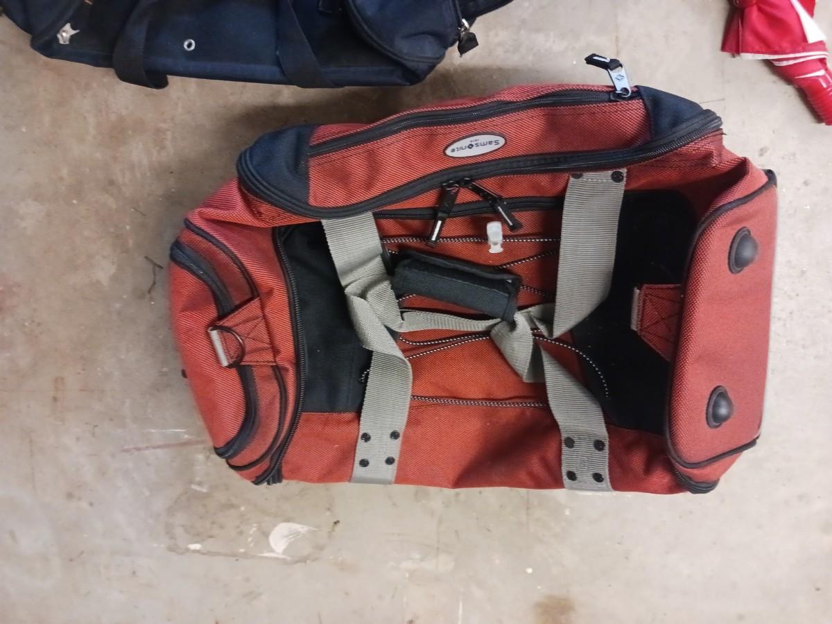 SAMSONITE AND ANOTHER SOFT SIDED BAG PLUS AN UMBRELLA