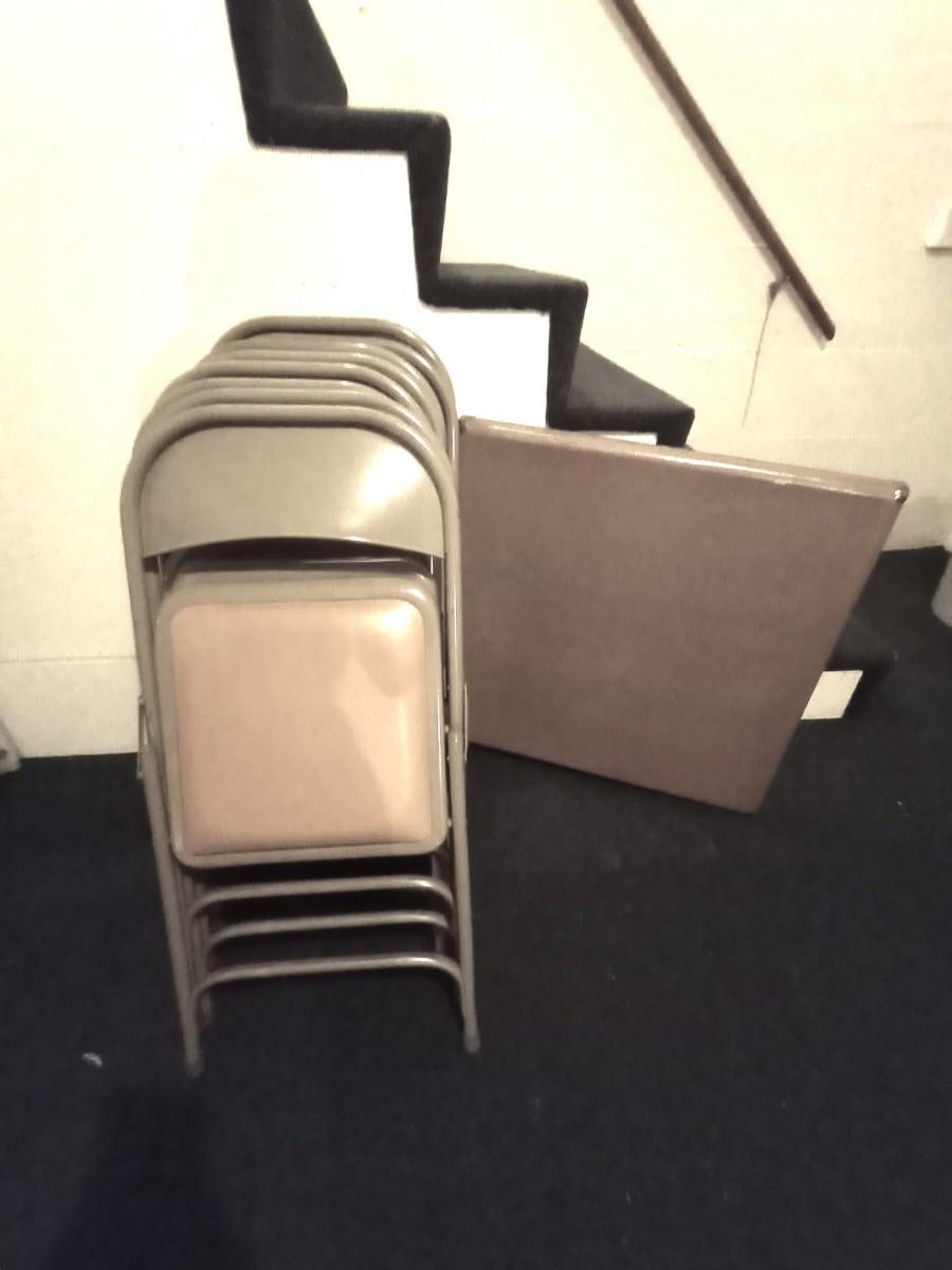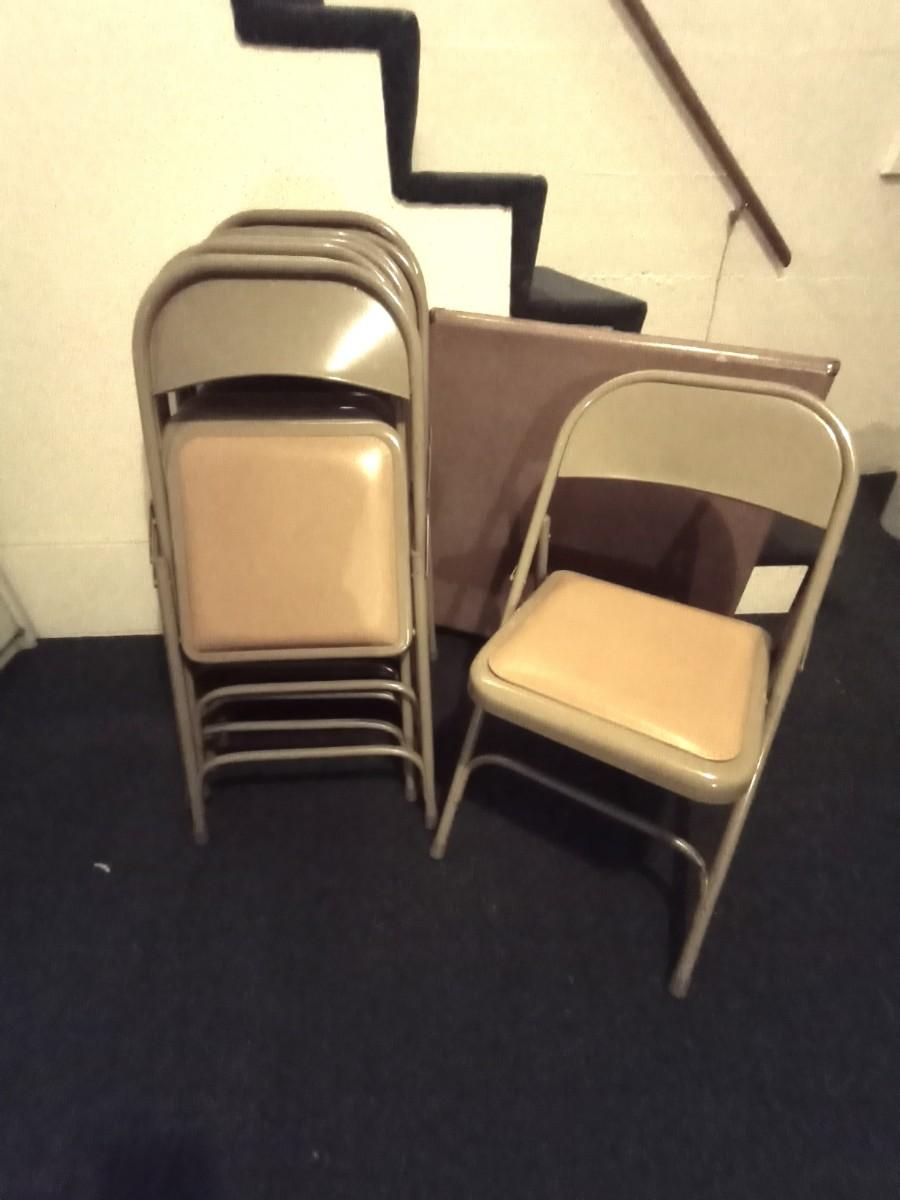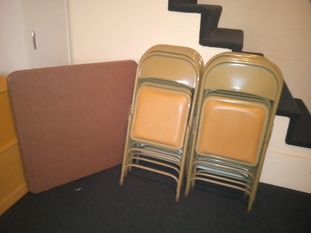 SAMSONITE CARD TABLE AND 8 PADDED FOLDING CHAIRS