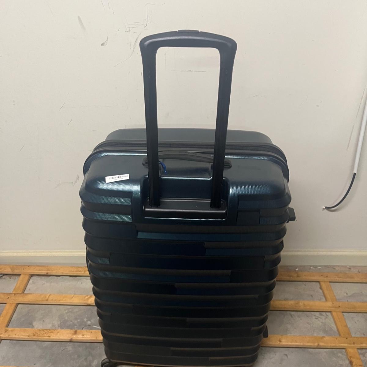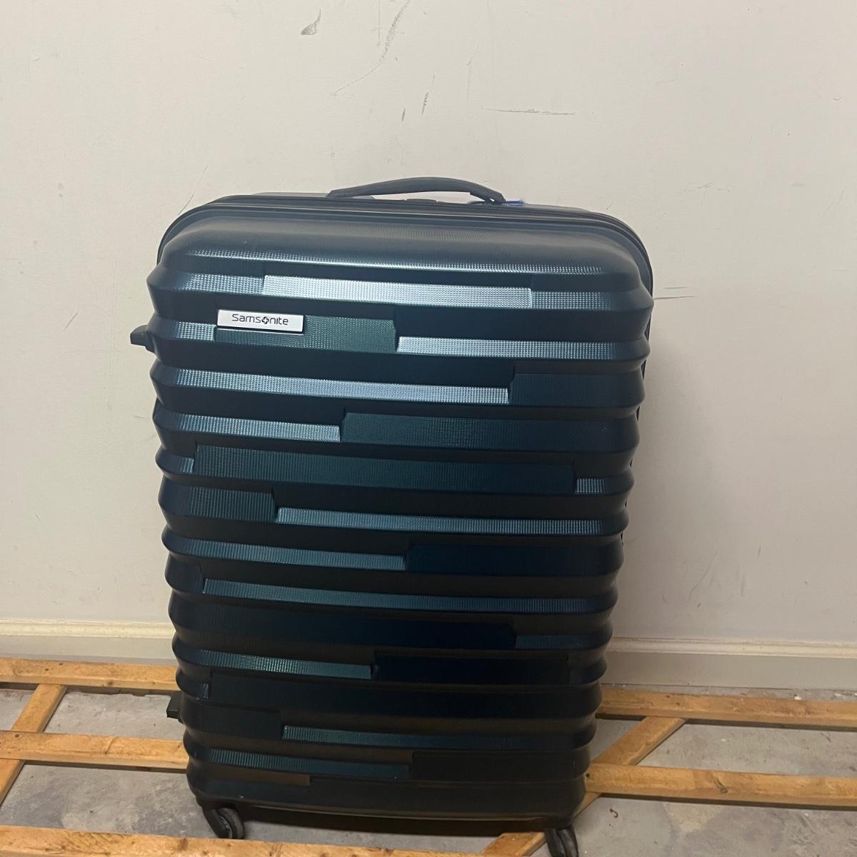 Lot includes a Samsonite hard sided suitcase and carry on. Also includes a soft sided Eagle Creek suitcase. All suitcases have wheels and extendable handles. The largest suitcase measures approximately 20" x 12" x 28"H. Local Pickup Only